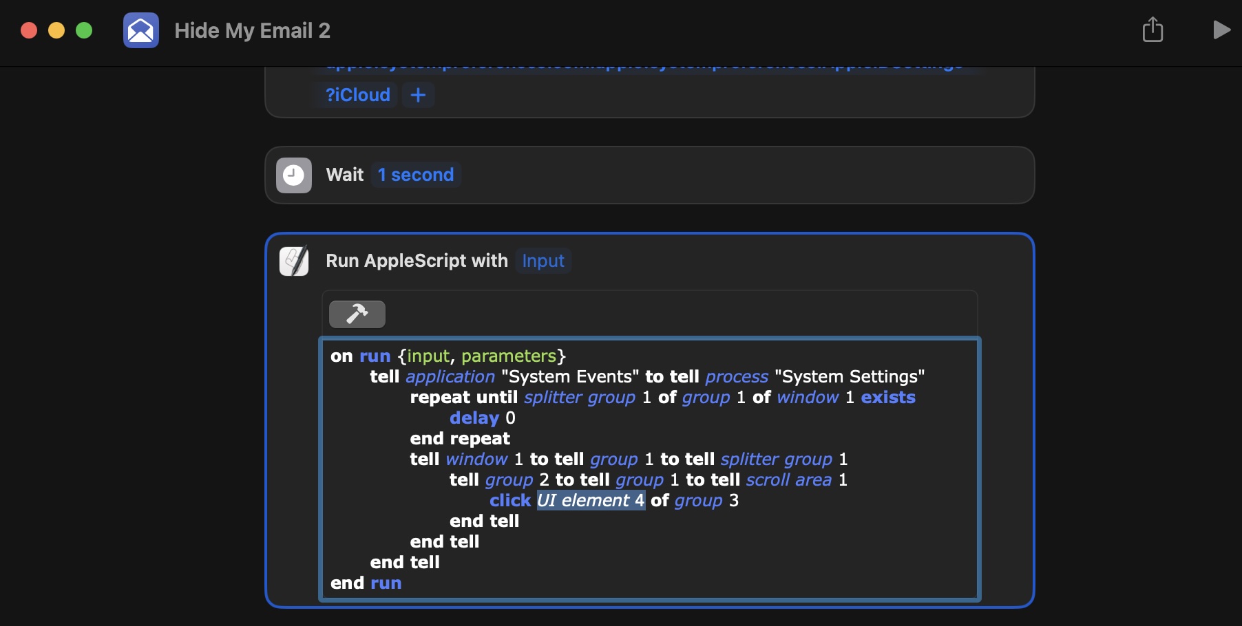 I'm trying to create a shortcut in macOS to open the Hide My Email subsection SystemPreferences -> AppleID -> iCloud -> Hide My Email, but I can only get to the iCloud subsection with: