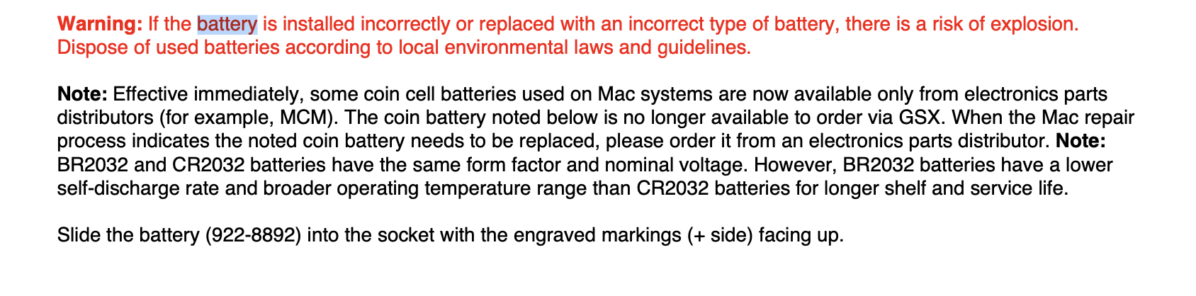 And long-life is relative; my Trashcan was a late one, made in June of '18, and the battery was dead when I got the computer last Fall. So the battery only lasted less than five years, which is way less than I'm used to seeing CR2032 batteries in my other Macs last.