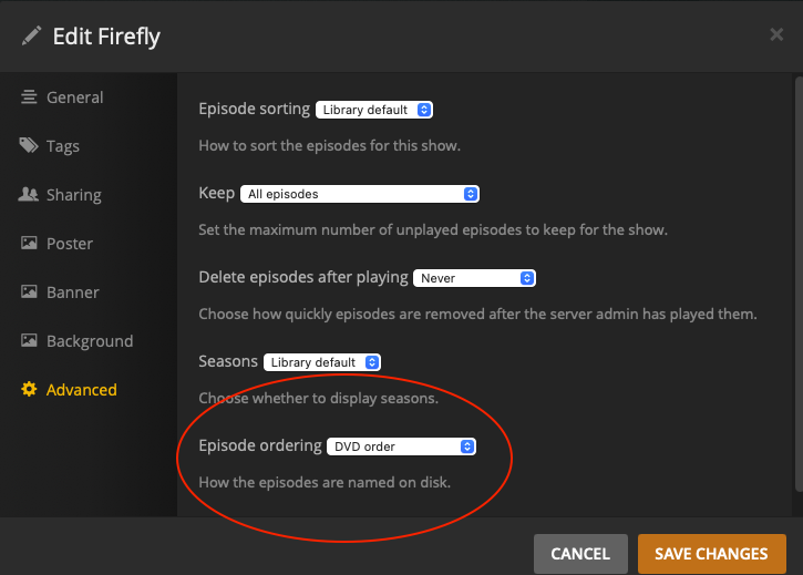 Some TV shows have different play order depending on when it originally aired and the DVD/Bluray version, Firefly comes to mind, for these they of shows, there is a setting in Plex to set it to DVD or Aired play order. This is more rare as well.
