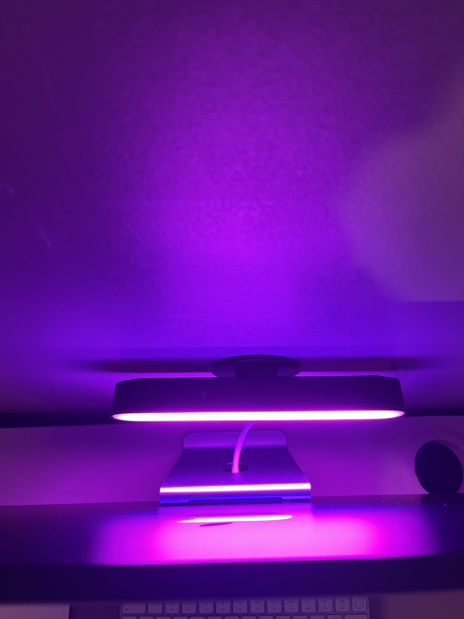 I LOVE hue lights! We have the play bars behind our TVs and in several lights around the house! I have our dining table light set up as red, white, and blue for memorial day and 4th of july! lol i change them out for different seasons/holidays. of course setting the white to the exact color we like is nice too!Update: I’ve added some nice Phillips hue lights at the back of the iMac and it looks absolutely amazing. Of course can change the colours.