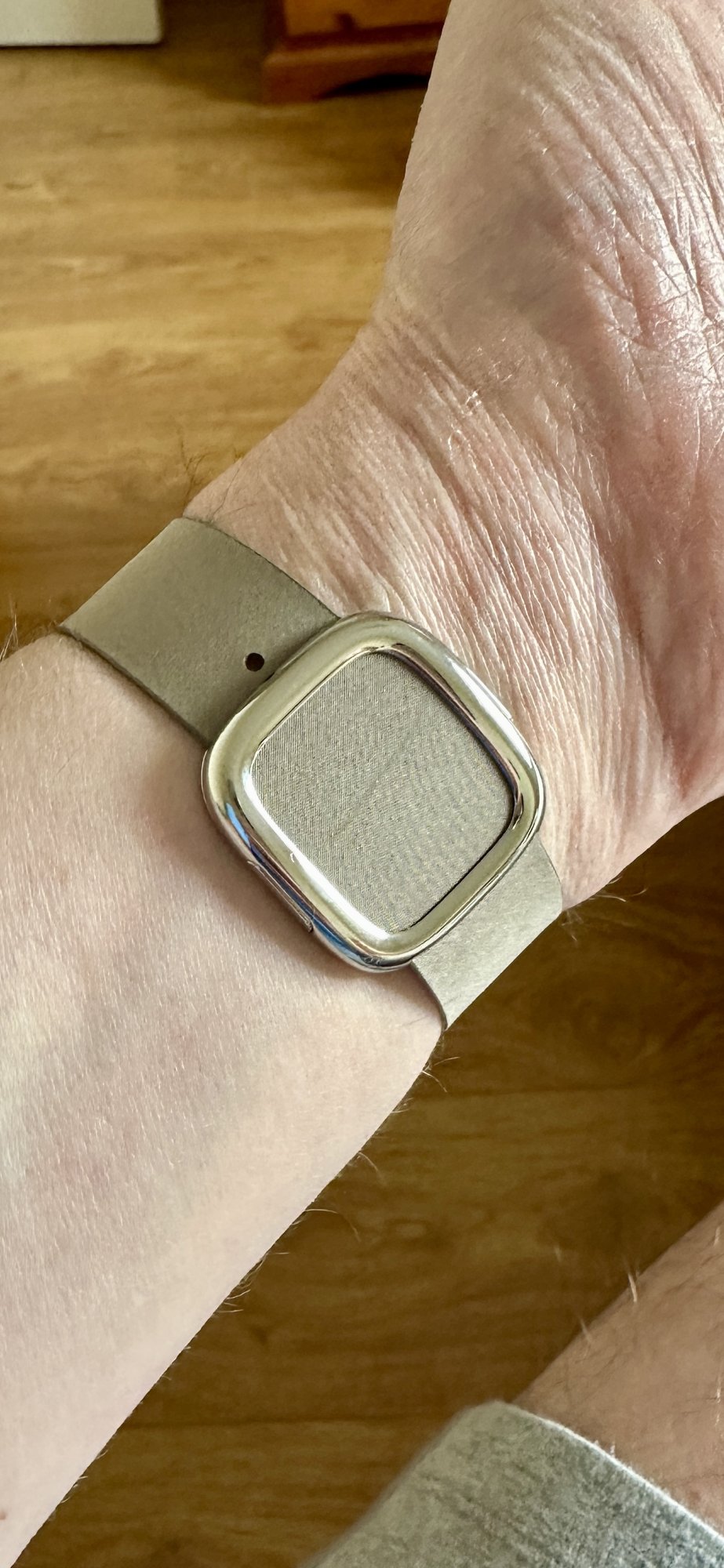 I very slightly caught the material with my nail, whilst putting on my new modern buckle, and it left a feint scratch.