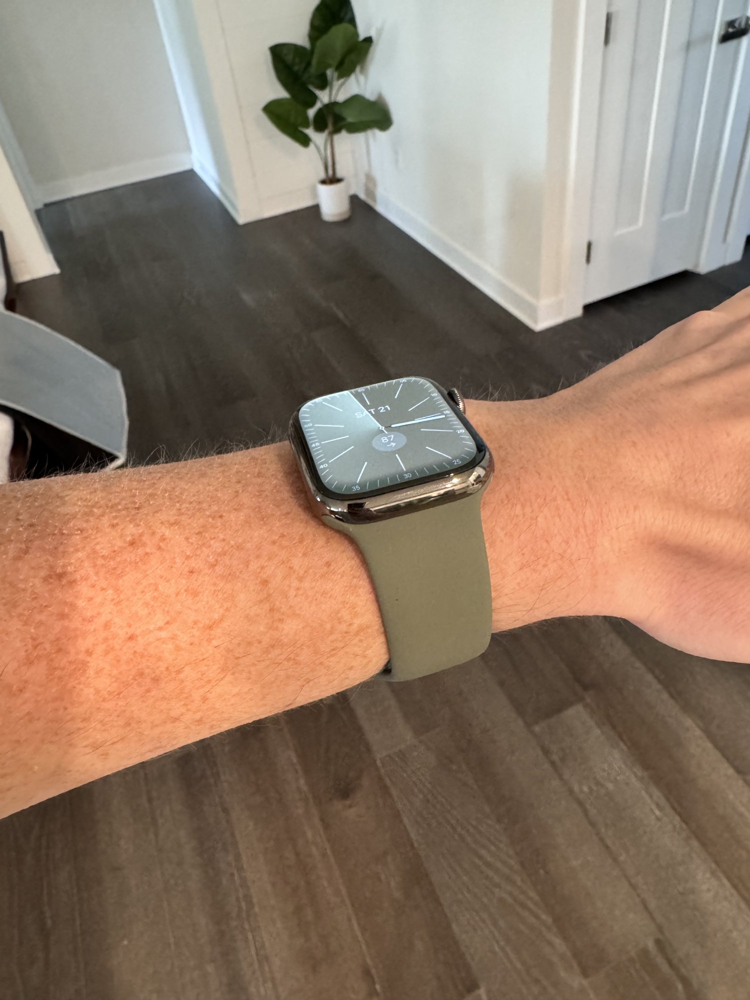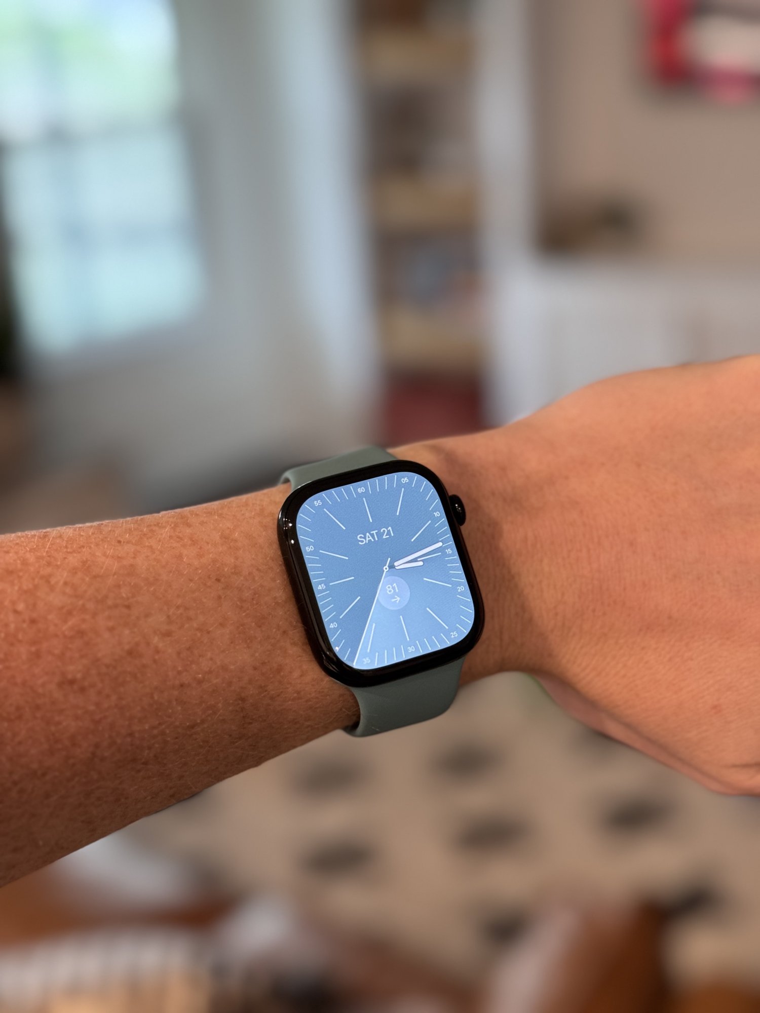 When side-by-side with the Series 7, it makes the Series 7 look 'boxy' in comparison (for want of a better term). The Series 7 sits more flush with your wrist which is nice.