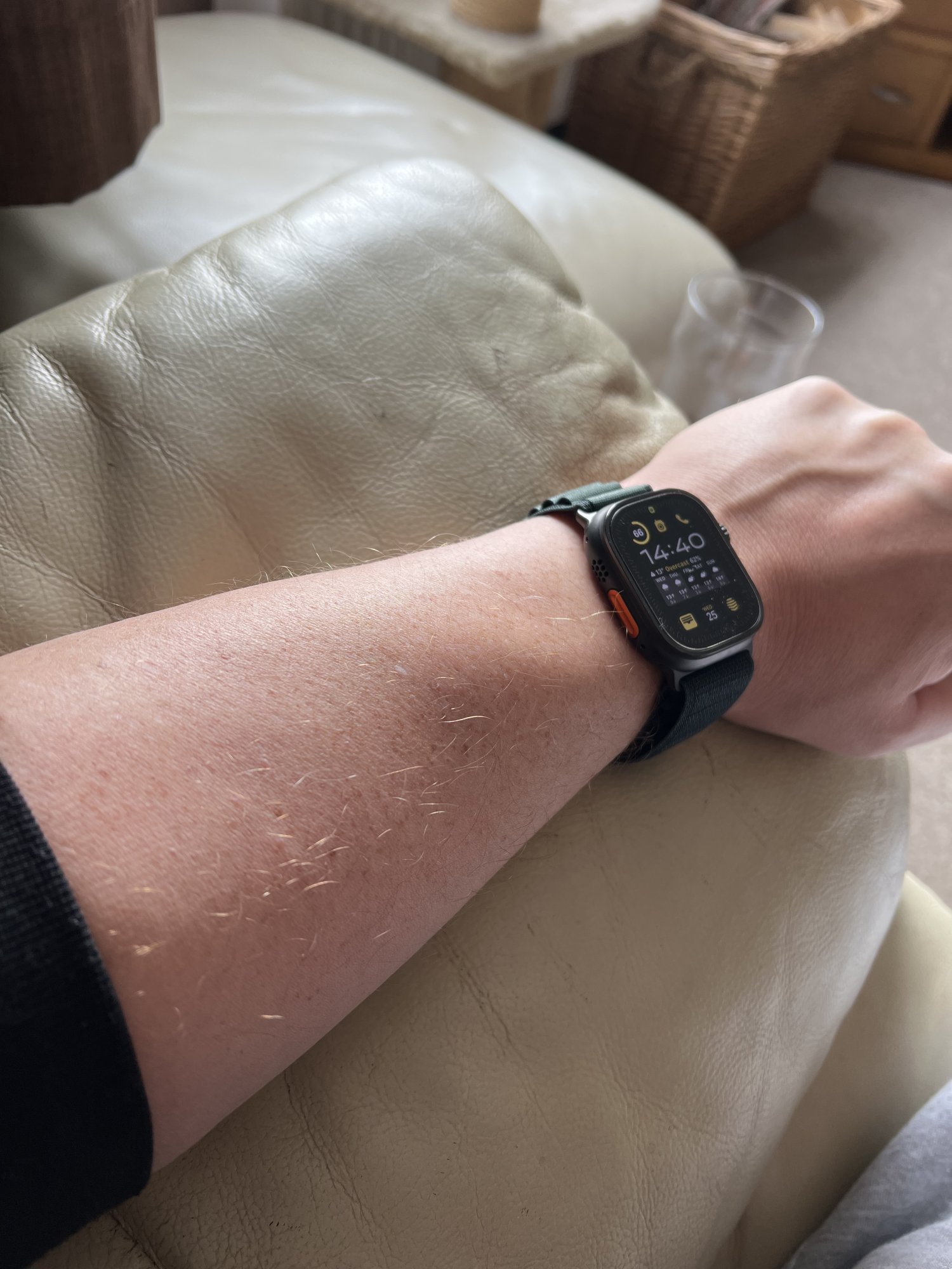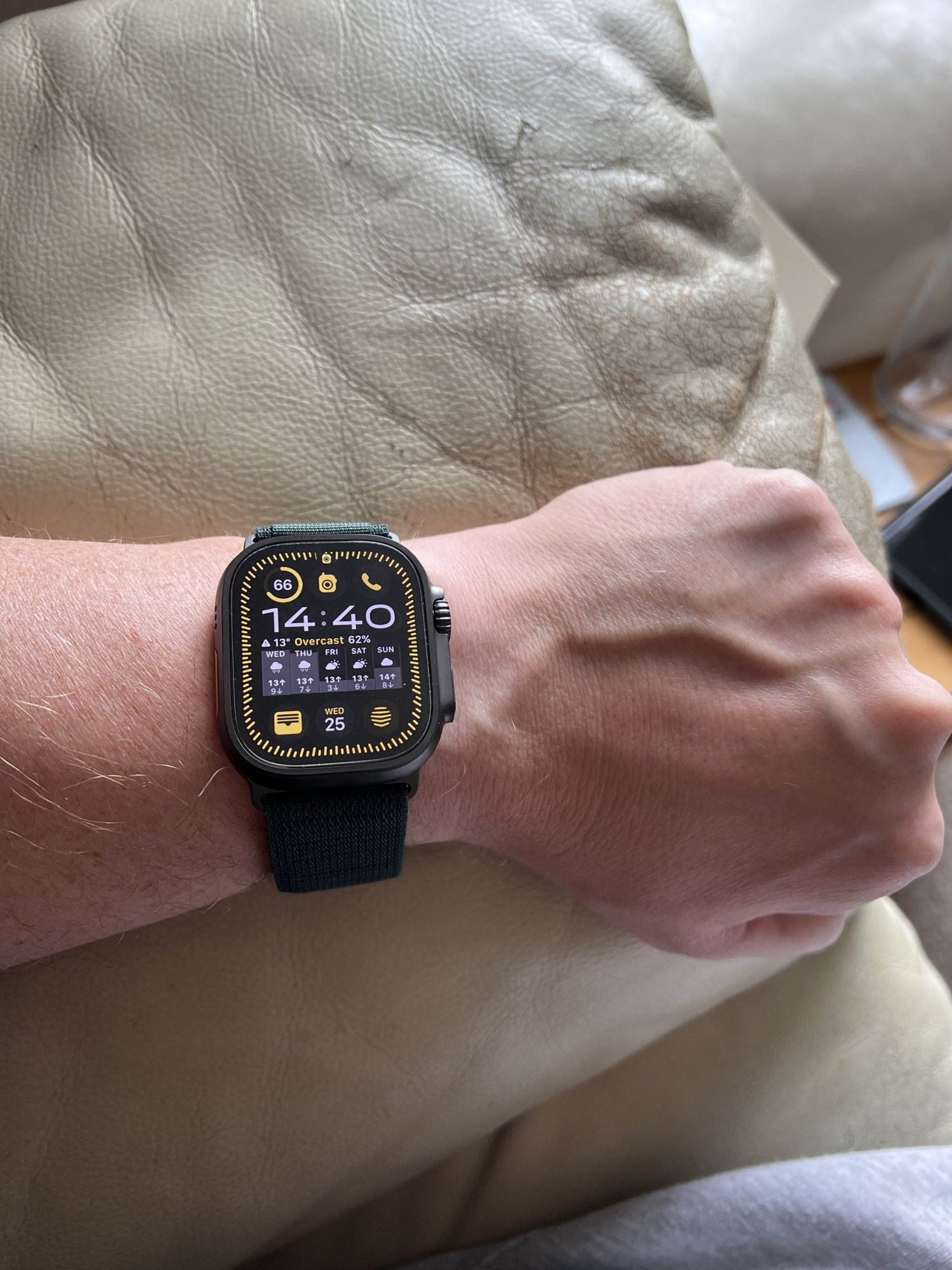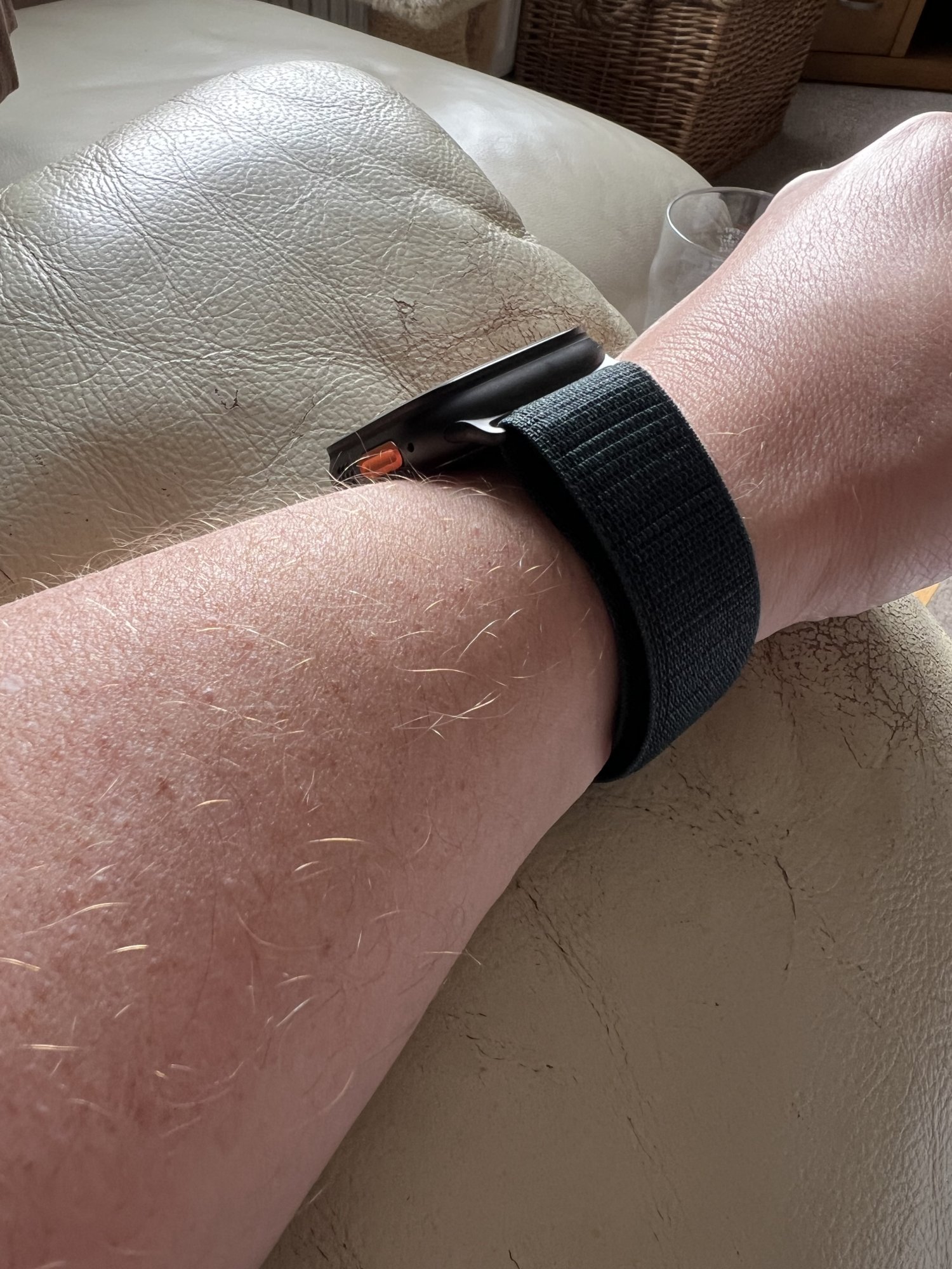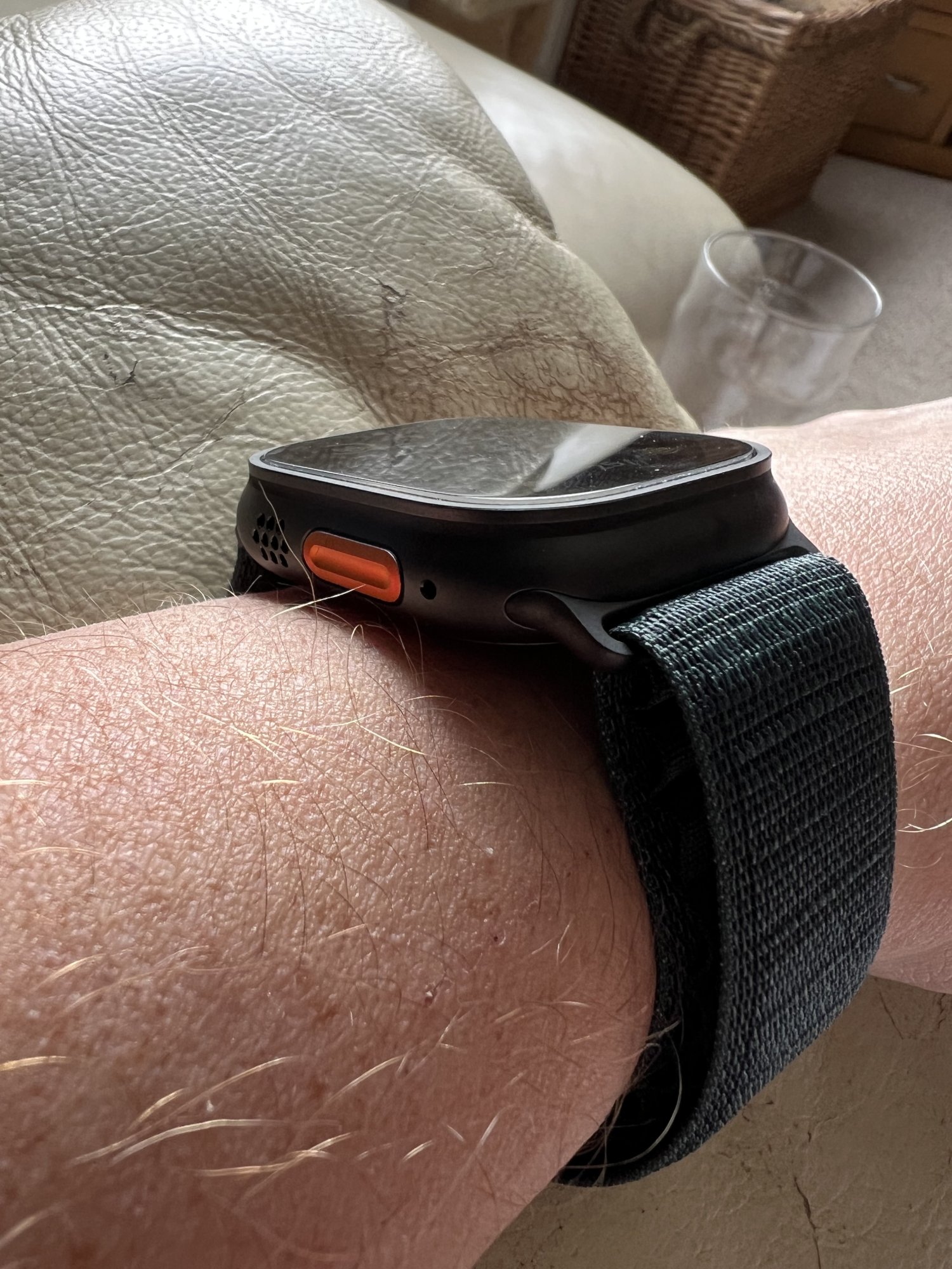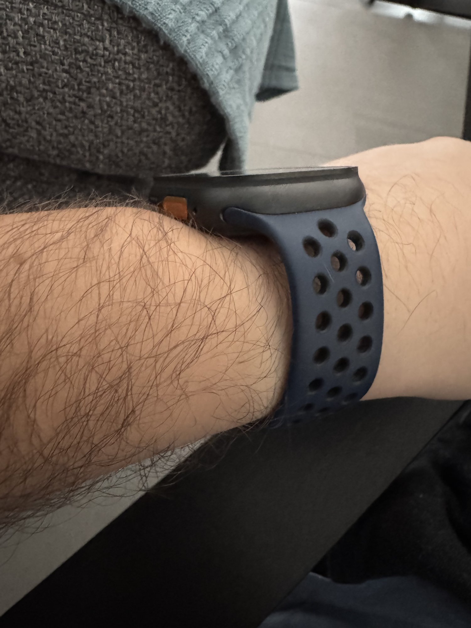 After 10 years trying different apple watch bands and after trying all ultra specific bands, there is no other (for me) like Nike Sport band for everyday use without any worries about sweat, smell, water, wine, oil, etc. it’s as comfortable as possible and you can clean it easily to maintain it like first day. Here Black AW2 + Blue/Obsidian Nike sport band combo, an stellar one. What a shame that the watch is too bulky for me…in some positions of my hand when I move the wrist I can feel the crown and its metal surroundings stuck in the skin, being a painful experience. I hope black S10 will be the perfect one.