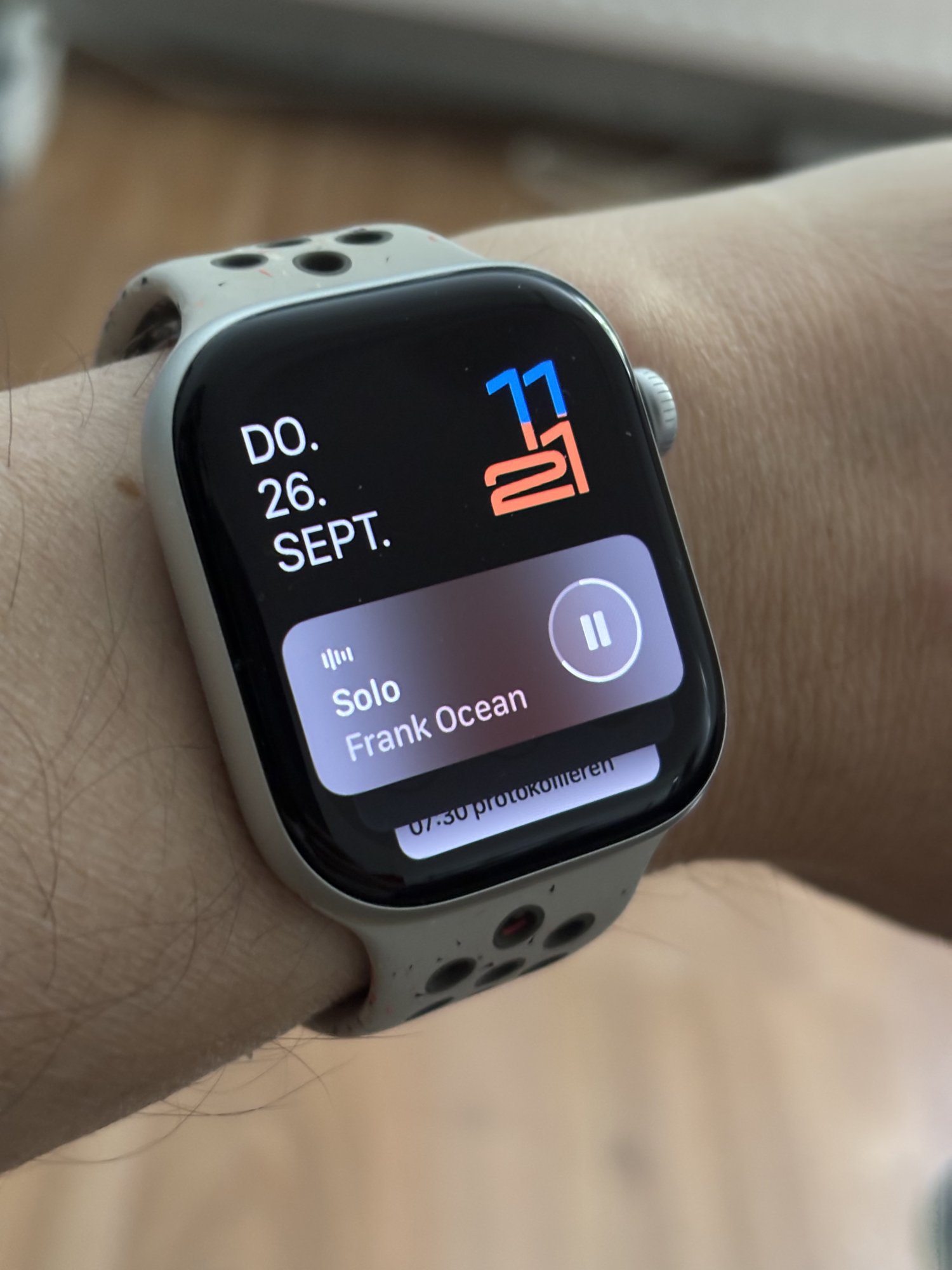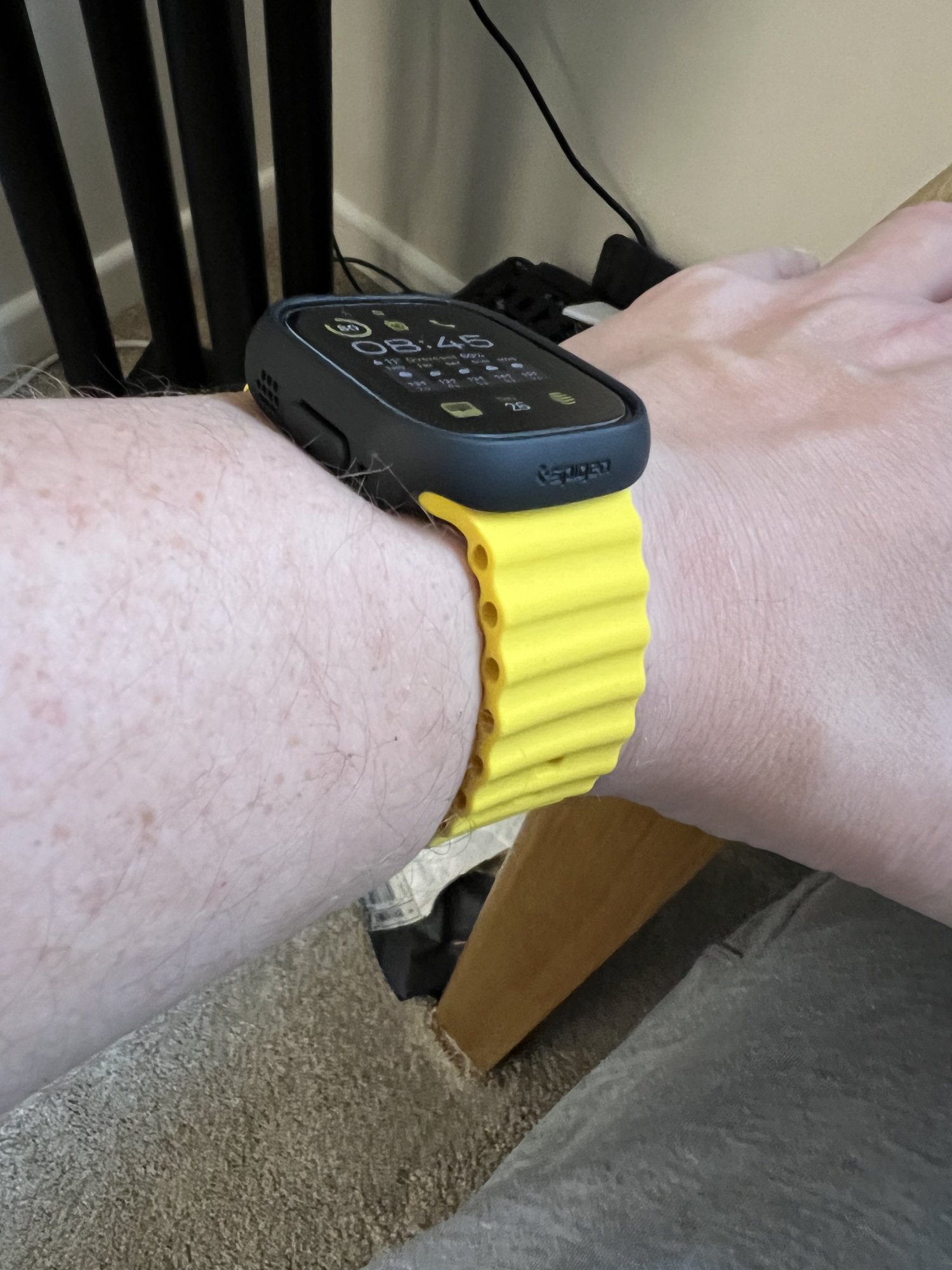 Today I am wearing my Midnight Blue Sport Band. One of my favorite colors that is darker than the deep navy sport band included with the Watch.