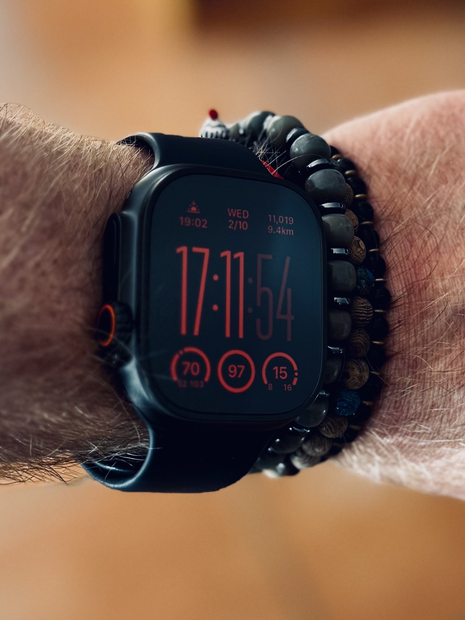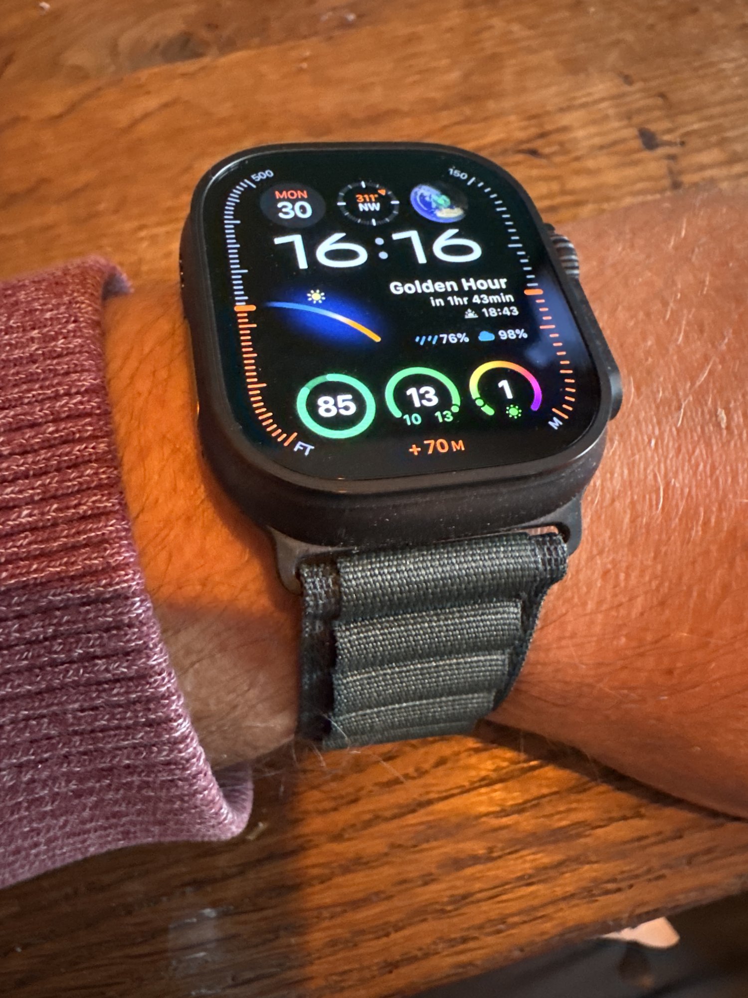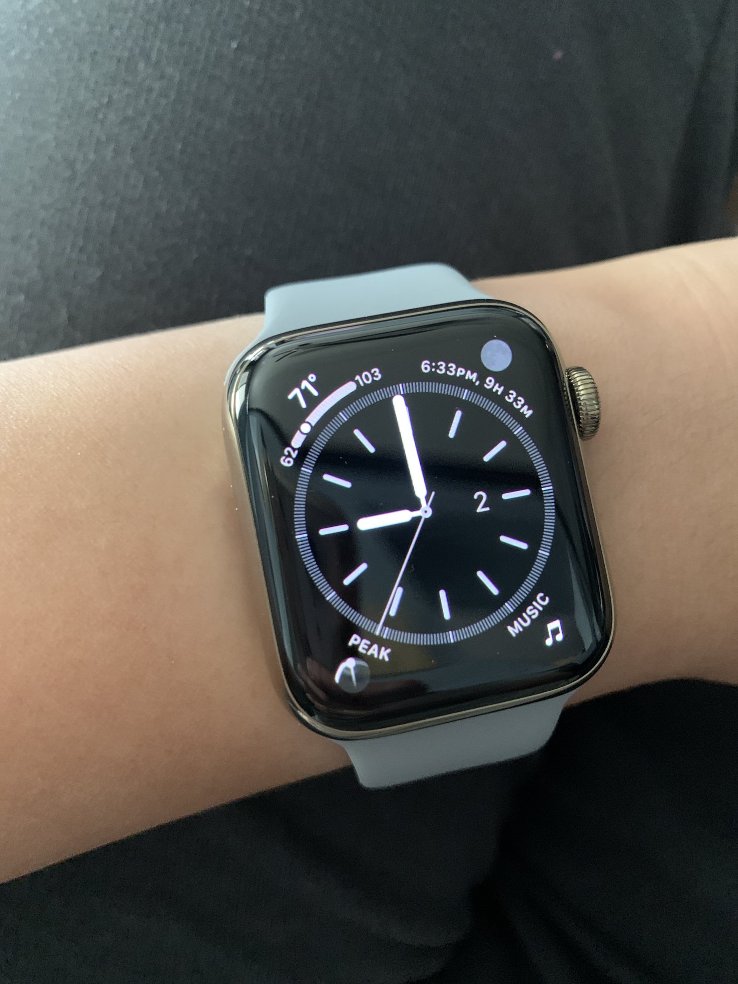 Black stripy woven nylon band on graphite. This is one of the few woven bands with the black aluminium lugs and buckle and pairs very well. Lugs fit the series 7-9 pretty well, with just a small excess sticking out if you’re looking for it - again it’s far more obvious in photos.