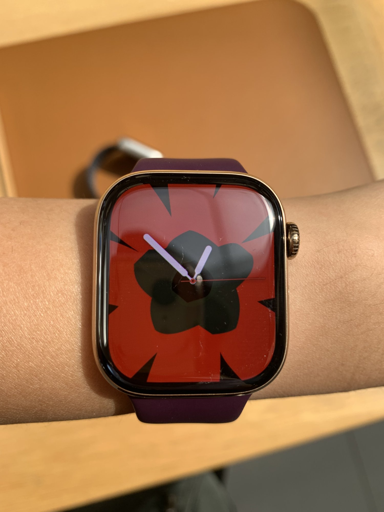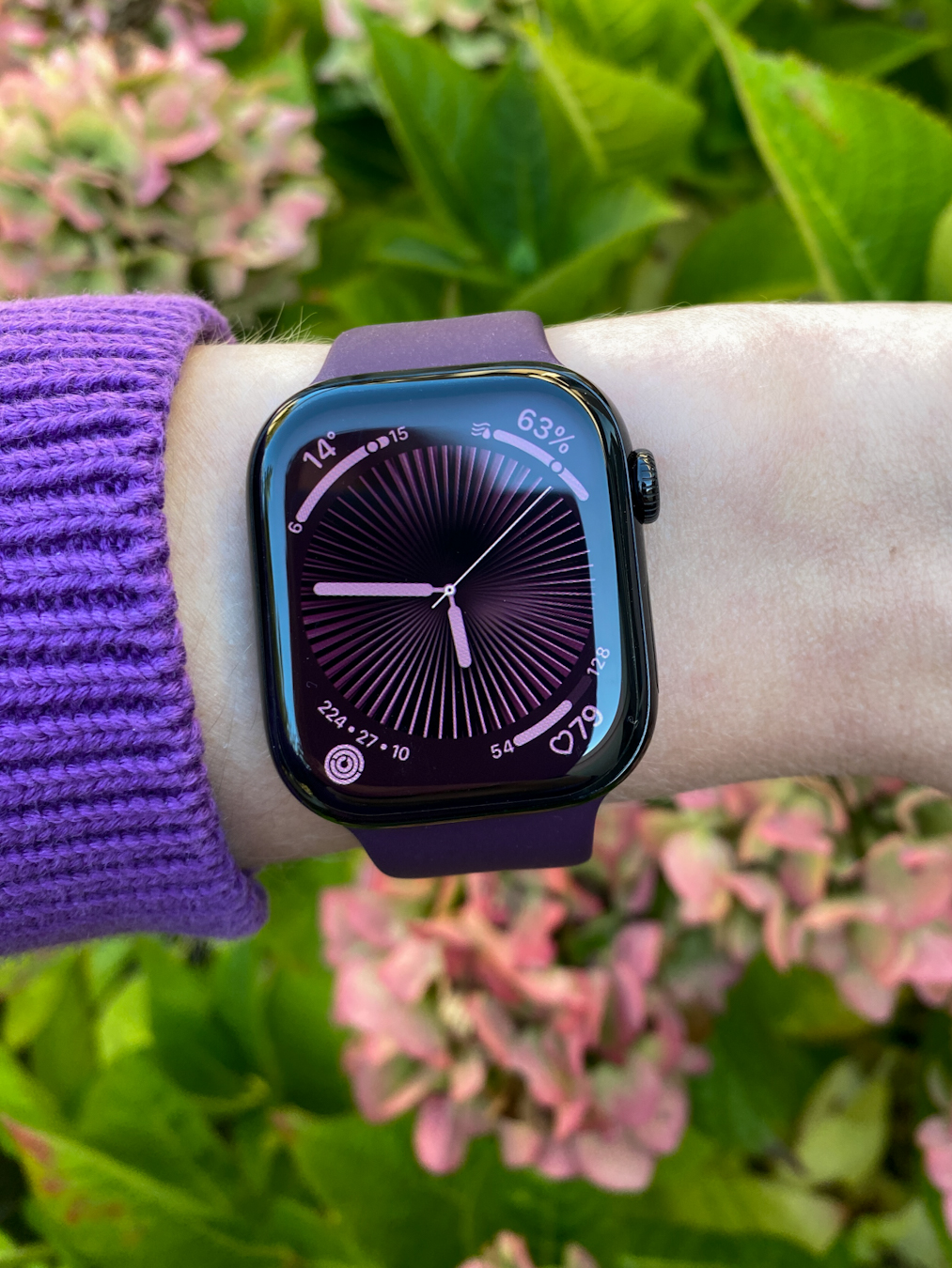 This is my first Apple Watch (series 10, 42mm in Jet Black 😍), I love it! And the plum band too. It goes well with my purple sweater!