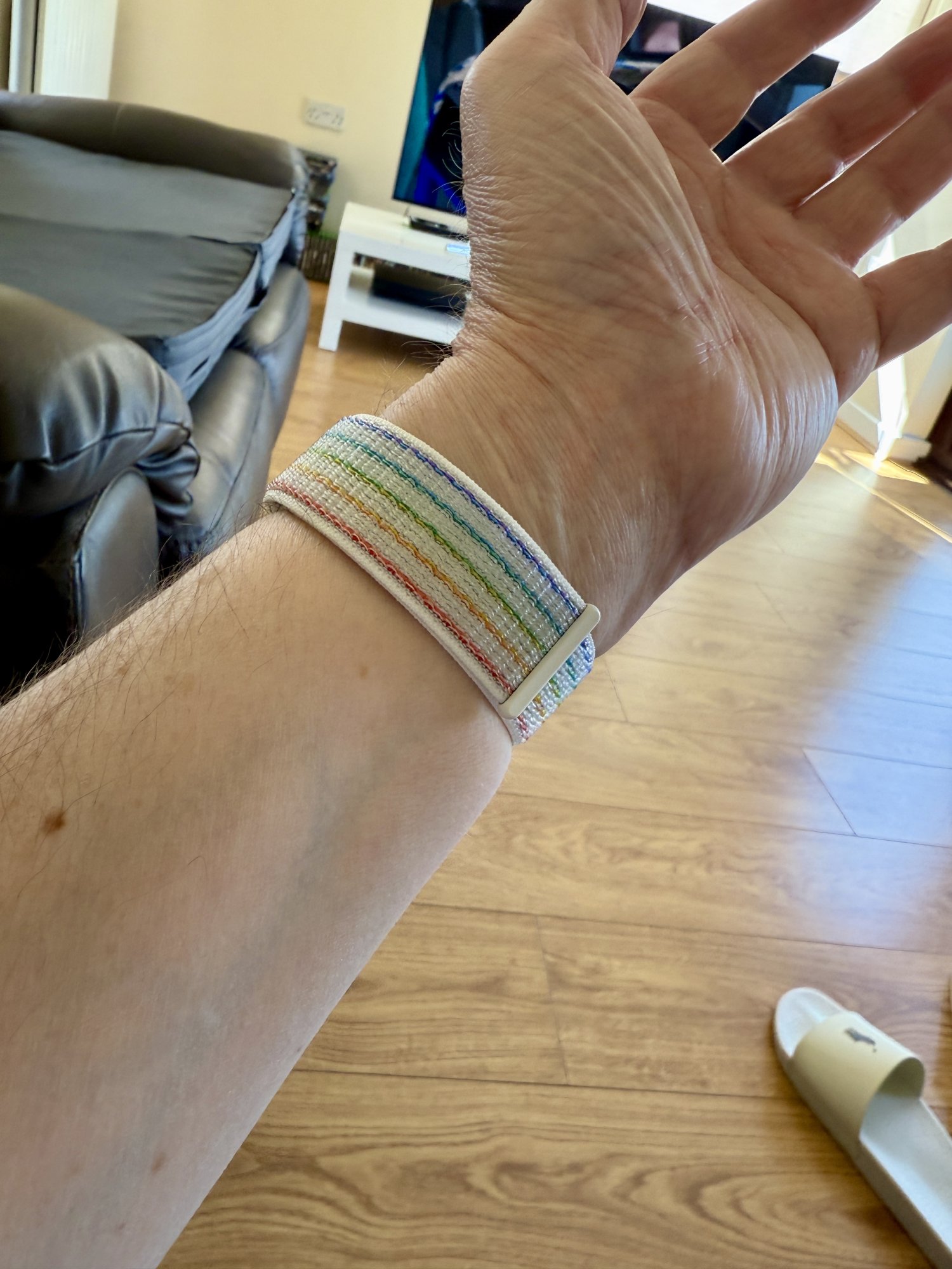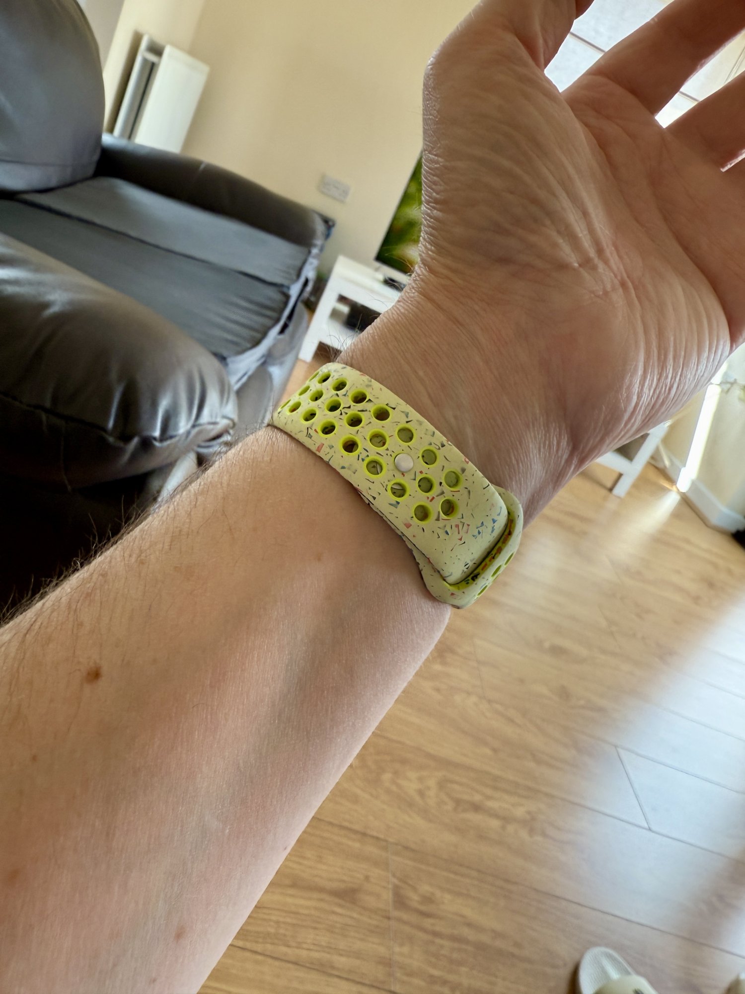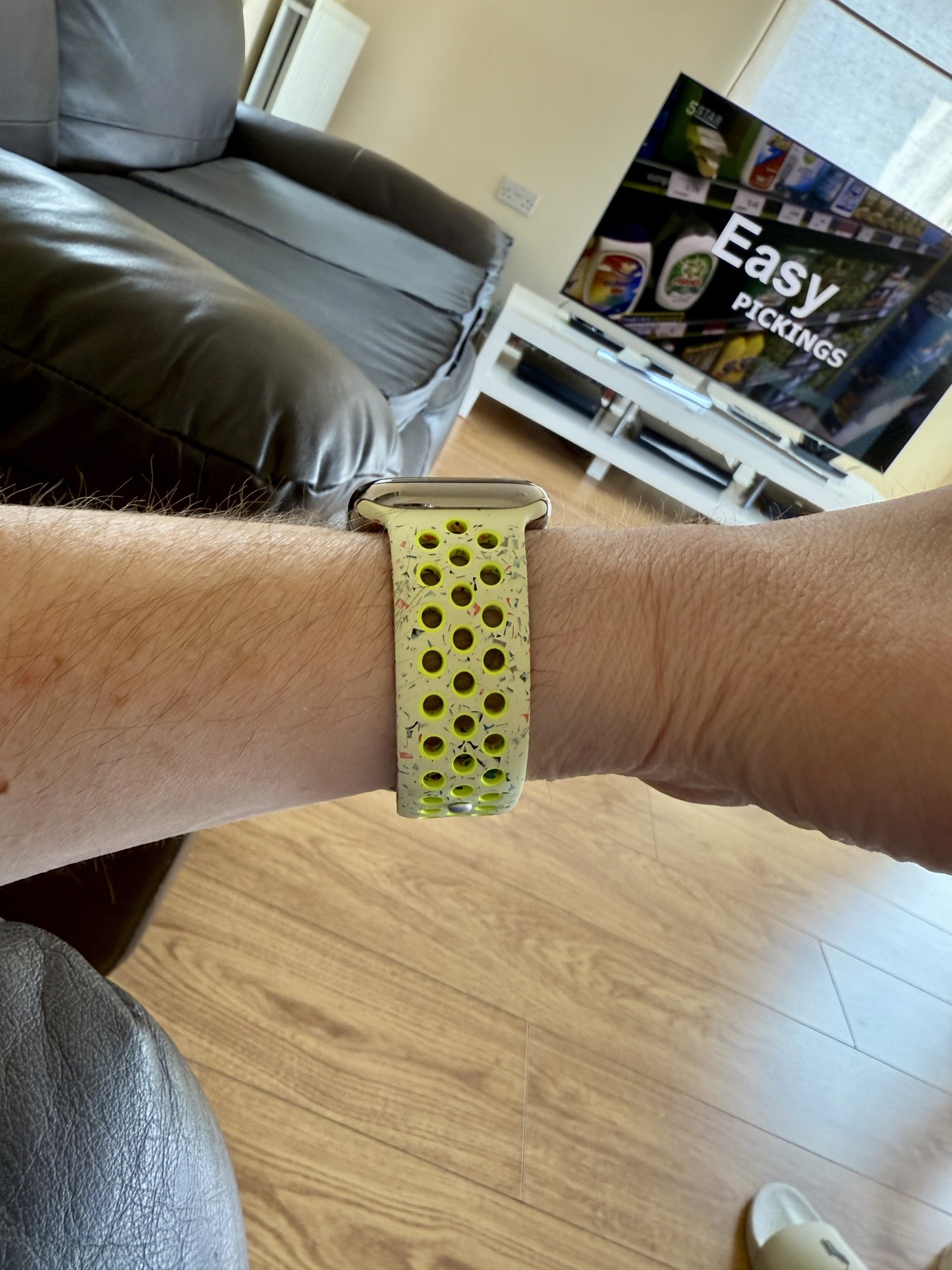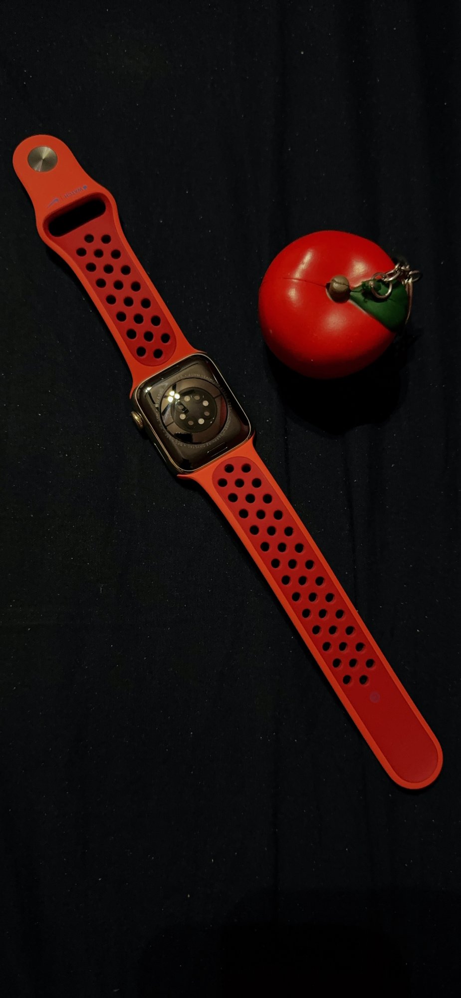 Nike Sport bands I like my gym red and bright crimson and other colours I am looking forward to next are bolt/black, Magic ember and crimson bliss, and the one that my Apple fan friend has on his Apple Watch Series 6 44mm space grey, the olive grey and cargo khaki.