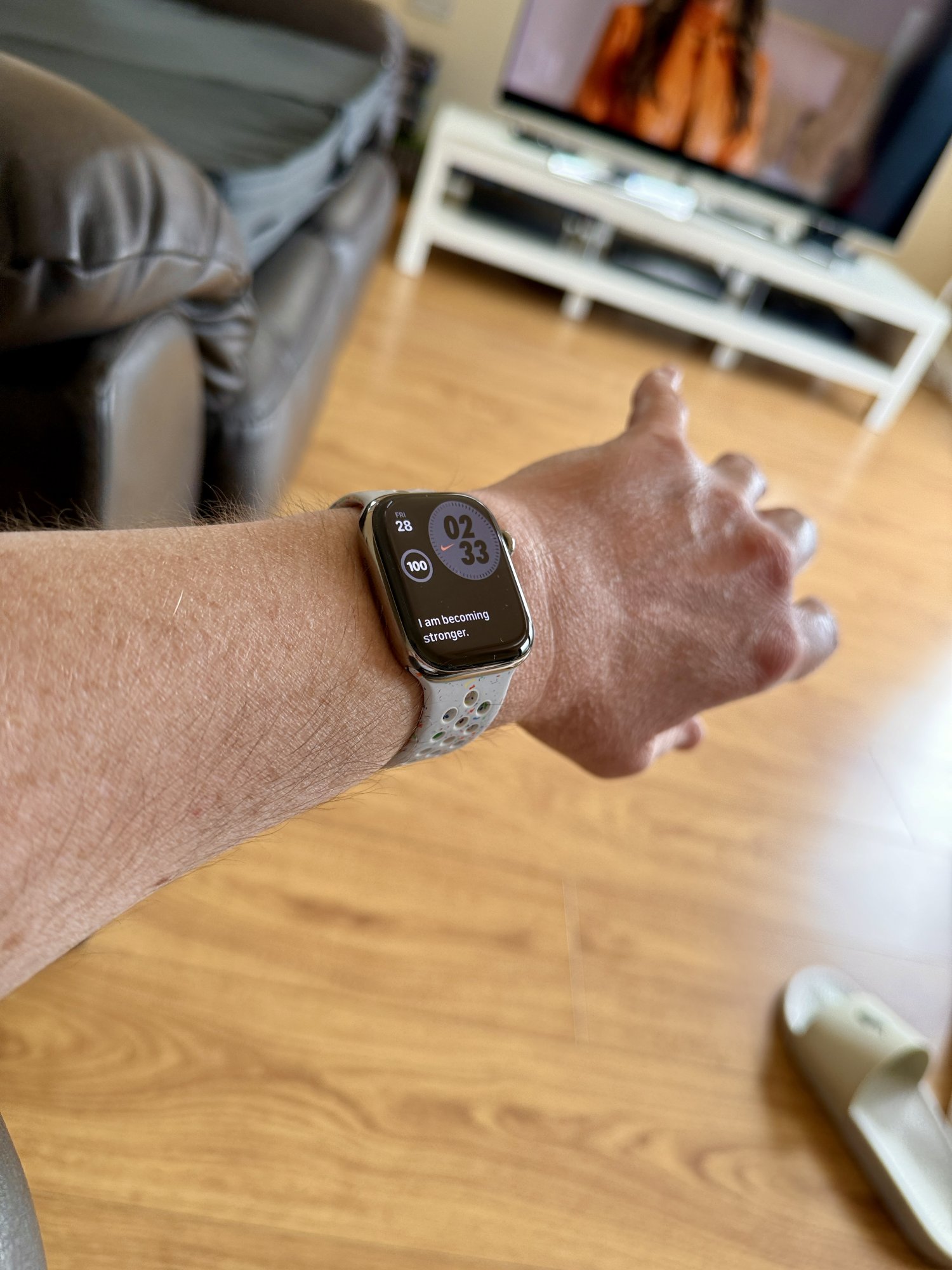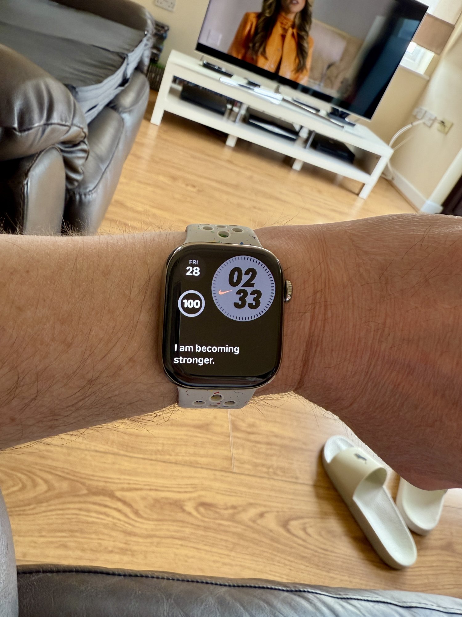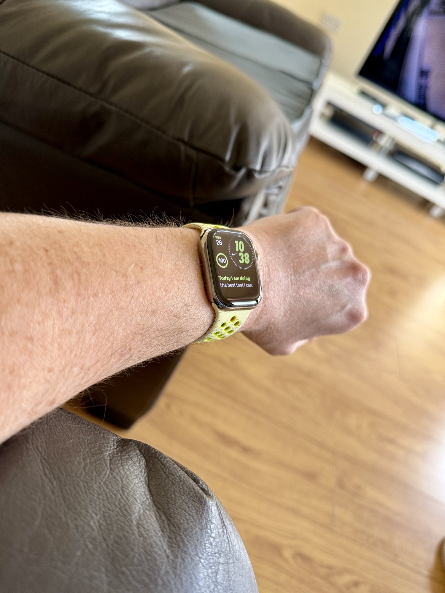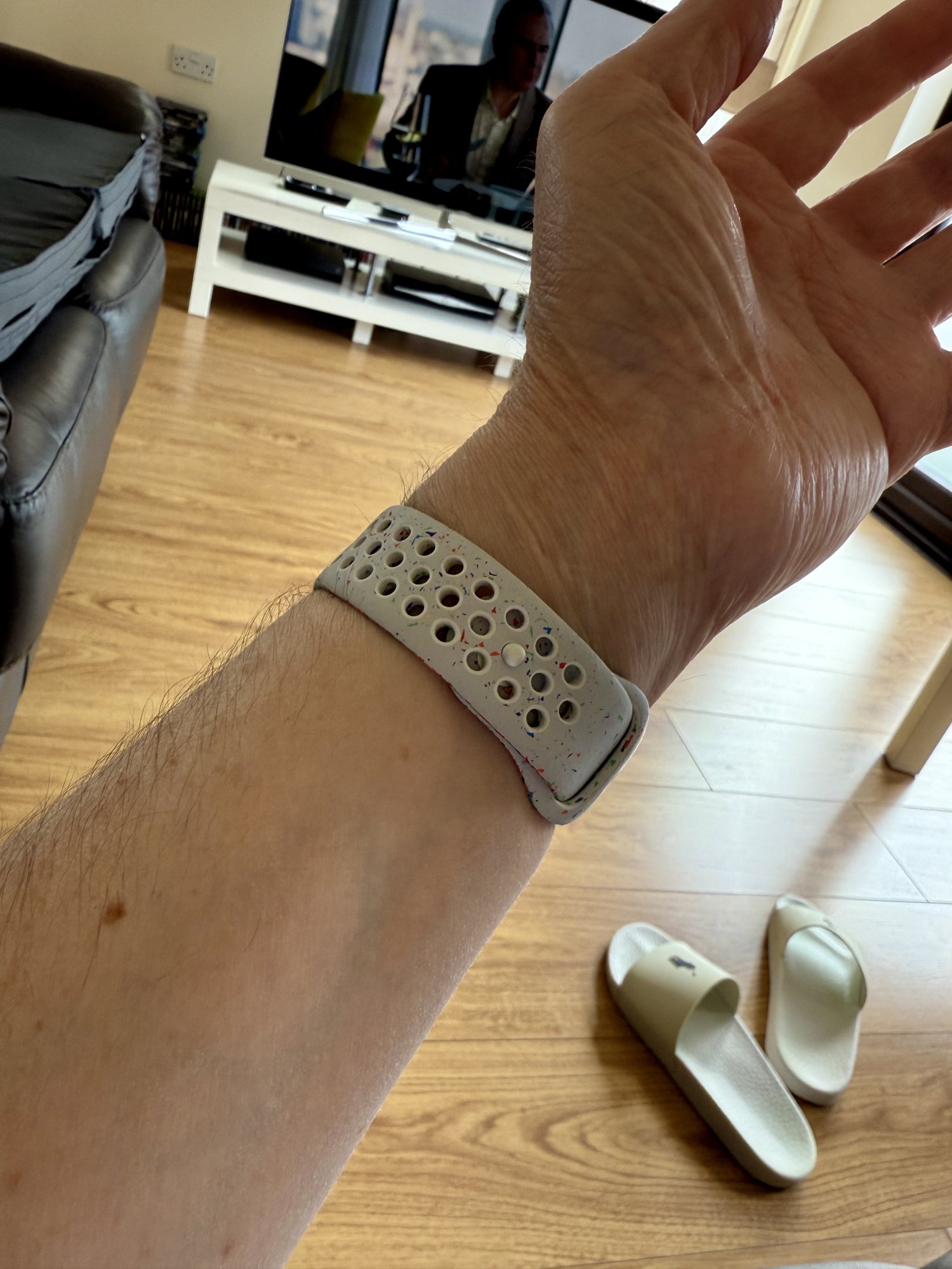 Nike Sport bands I like my gym red and bright crimson and other colours I am looking forward to next are bolt/black, Magic ember and crimson bliss, and the one that my Apple fan friend has on his Apple Watch Series 6 44mm space grey, the olive grey and cargo khaki.
