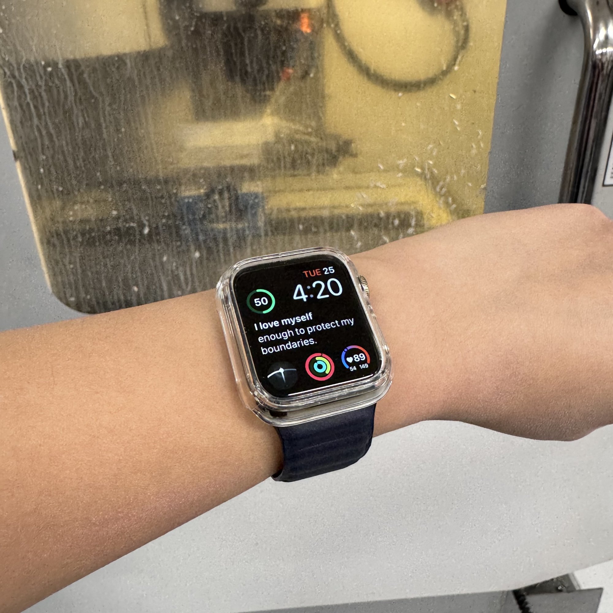 I’m glad you use a case too! I had a bunch of cases for my Apple Watch Series 1 when I was working on CNC machines, but now I have one that’s hard plastic like yours to protect against scratches and all those chips from the machine. I use it every Tuesday when I go to the shop class every Tuesday afternoon. Here’s mine:
