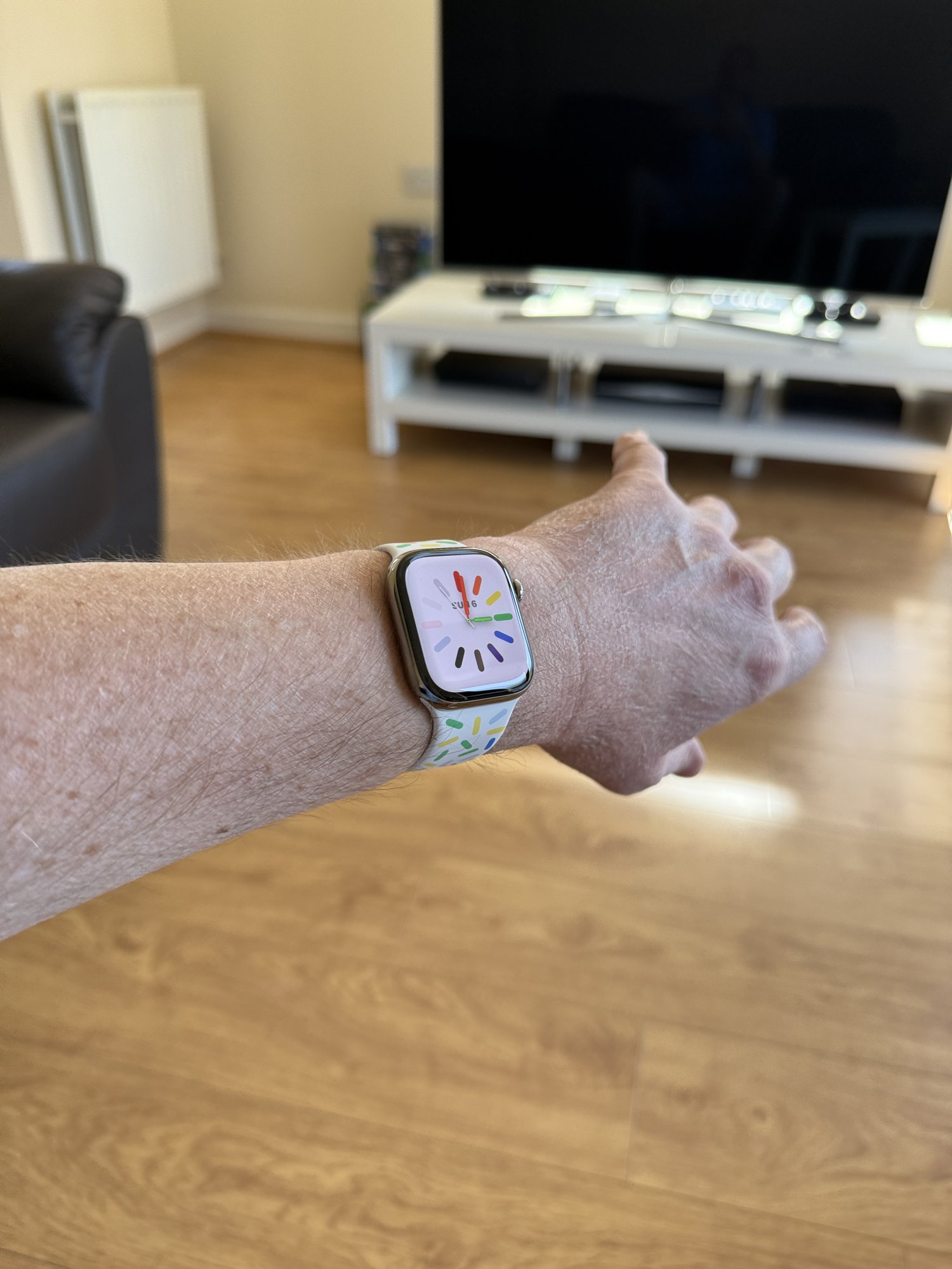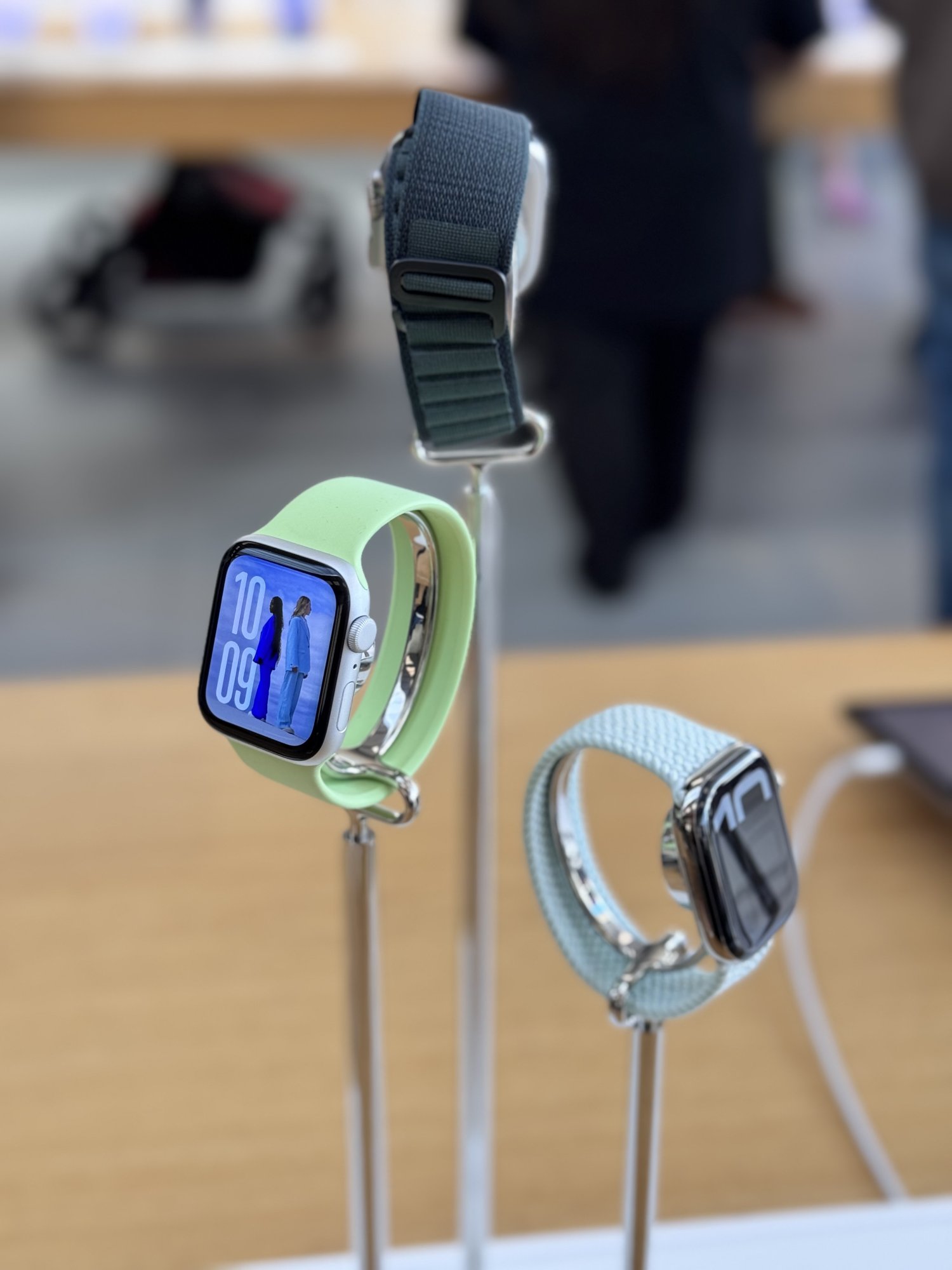 Second one is a little too bright and funky I prefer wearing that one with dark Apple Watches.