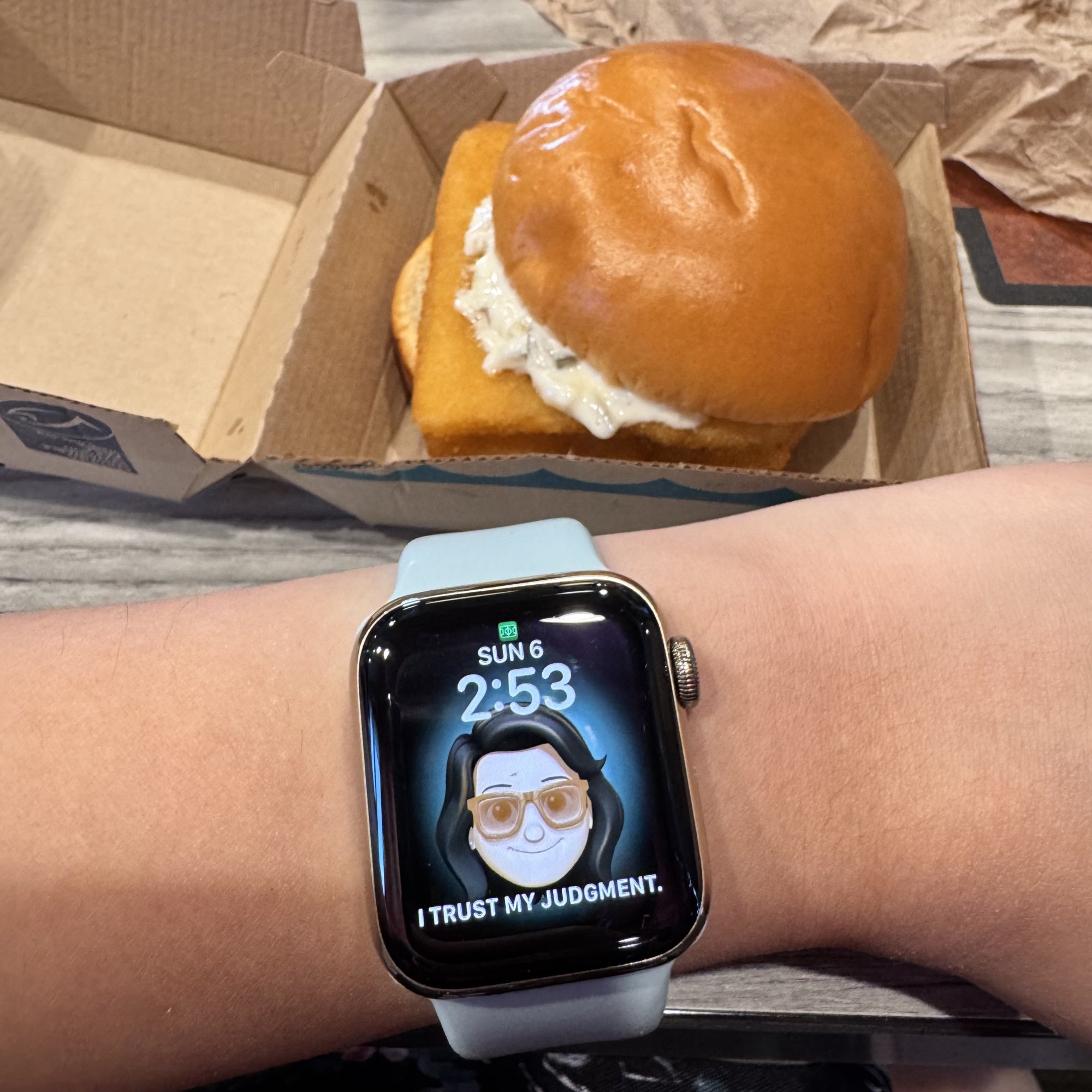 I technically am but I just took advantage of the filet o fish promo in mcds for lunch today and wore my turquoise sport band.That’s a fillet o fish.