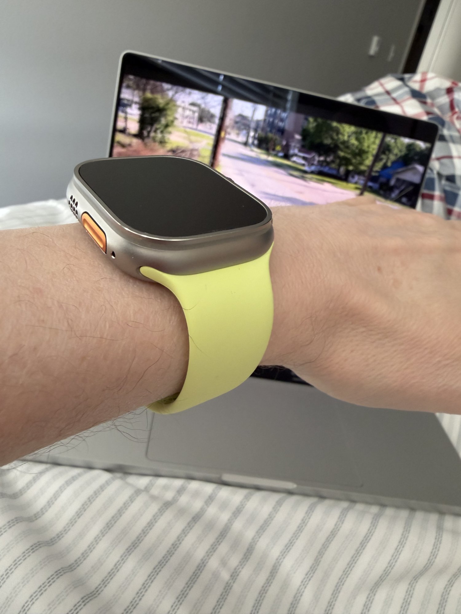 Back to natty titanium? Looks niceAWU3 with neon yellow sport band. I like this band a lot more than I thought I would!