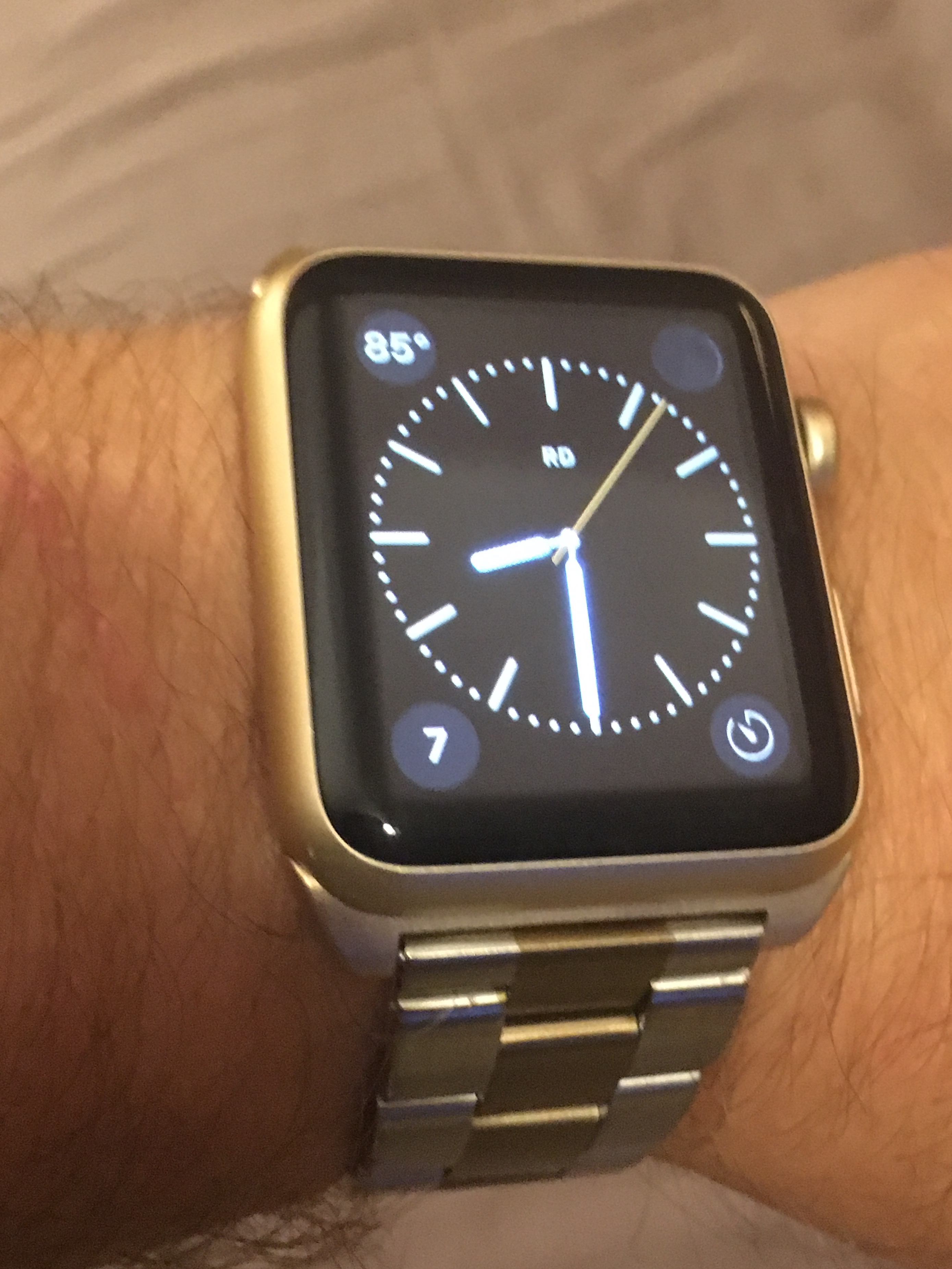 Am I the only one who thinks a square face just doesn't work. They try and make it a small phone screen by cramming all sorts of stuff on it so it looks messy and cluttered. just have a clock face,, then a swipe left or right to see other app faces.. fitness, music etc.Going for a yellow text colour to go with my clothes. But, you can't really tell here...