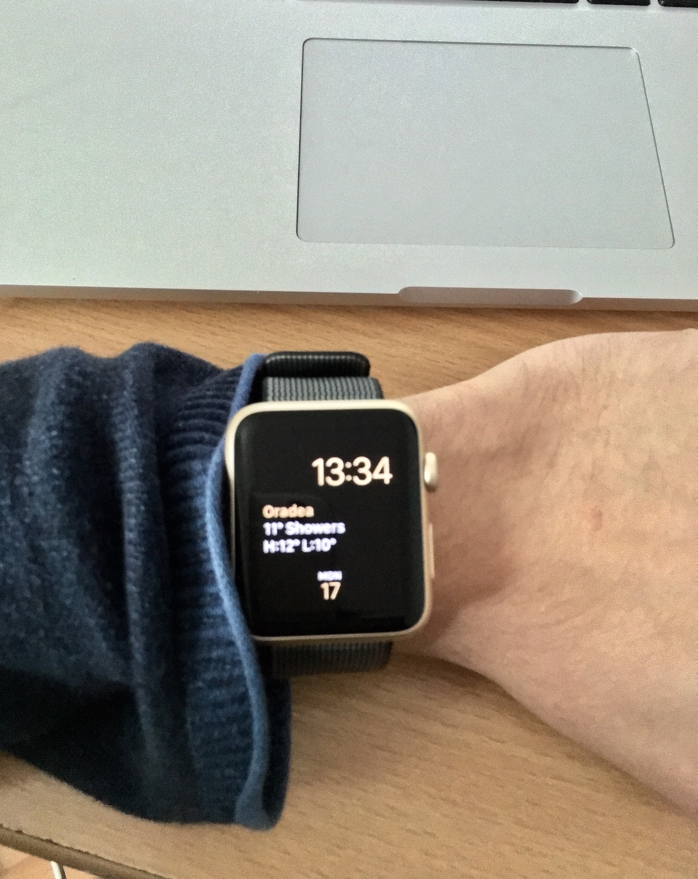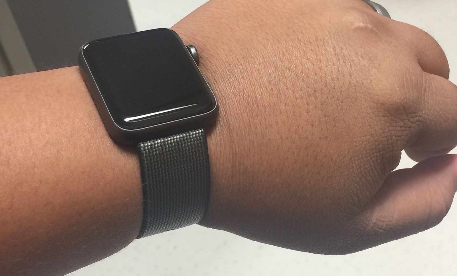 I took this last year when I bought the first generation Apple Watch. This is the 42mm Space Grey with the white Apple Watch Sport Band.