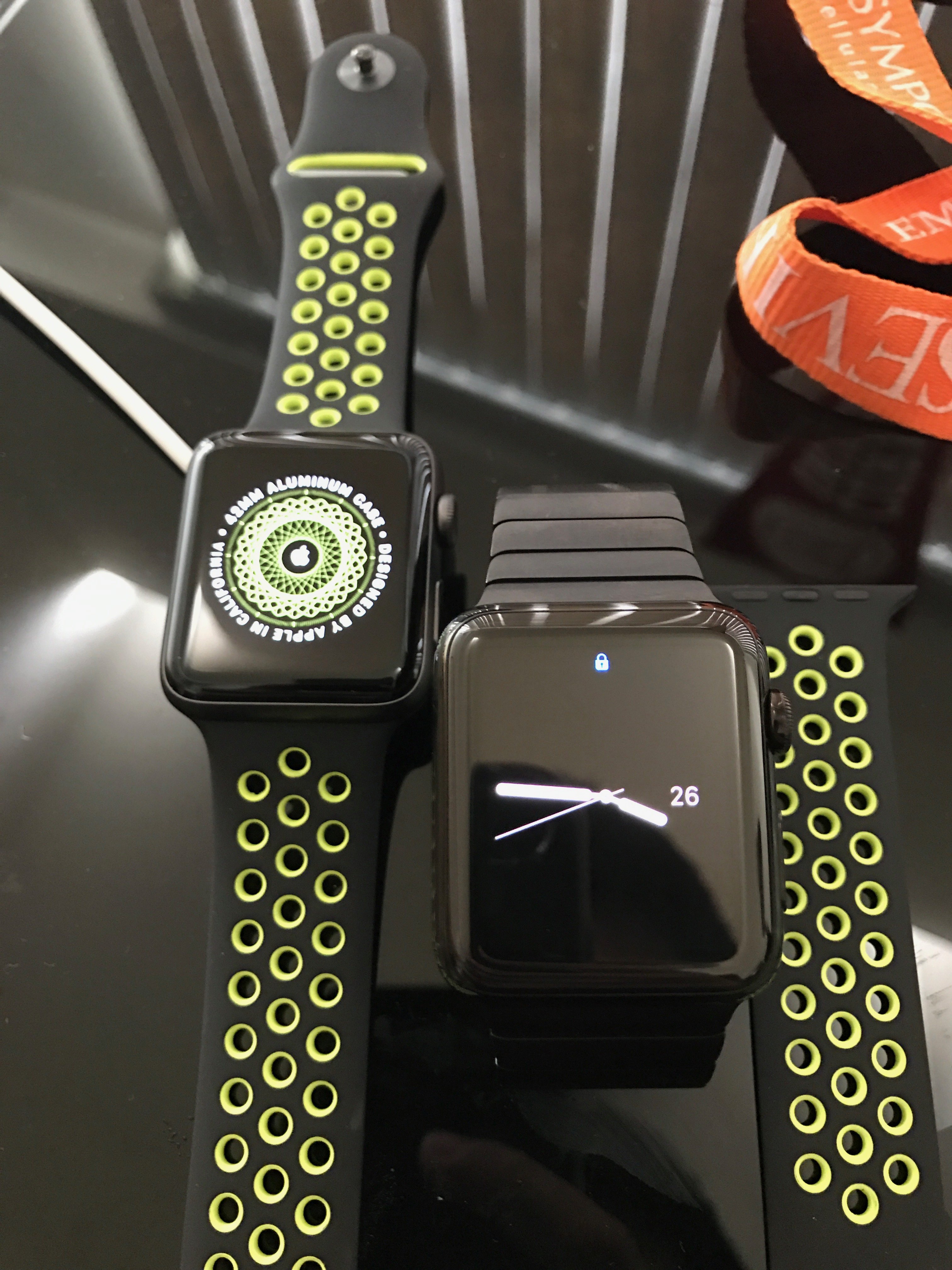 So, I went to the local Apple Premium Reseller and 'upgraded' my Apple Watch Sport to a stainless steel Apple Watch with Black Sport Band (although I immediately replaced it with my brown leather band with classic buckle), as it was on sale. Unfortunately not the Series 2, but it's not like I was that excited about the new features. Improved performance would be good for future-proofing, but watchOS 3 already made the older ones much faster. And I wouldn't want to swim with a SS watch anyway, so the 'swimproofing' isn't interesting enough to me. And GPS... well, I'm not such an active guy and always carry around my iPhone with me anyway.