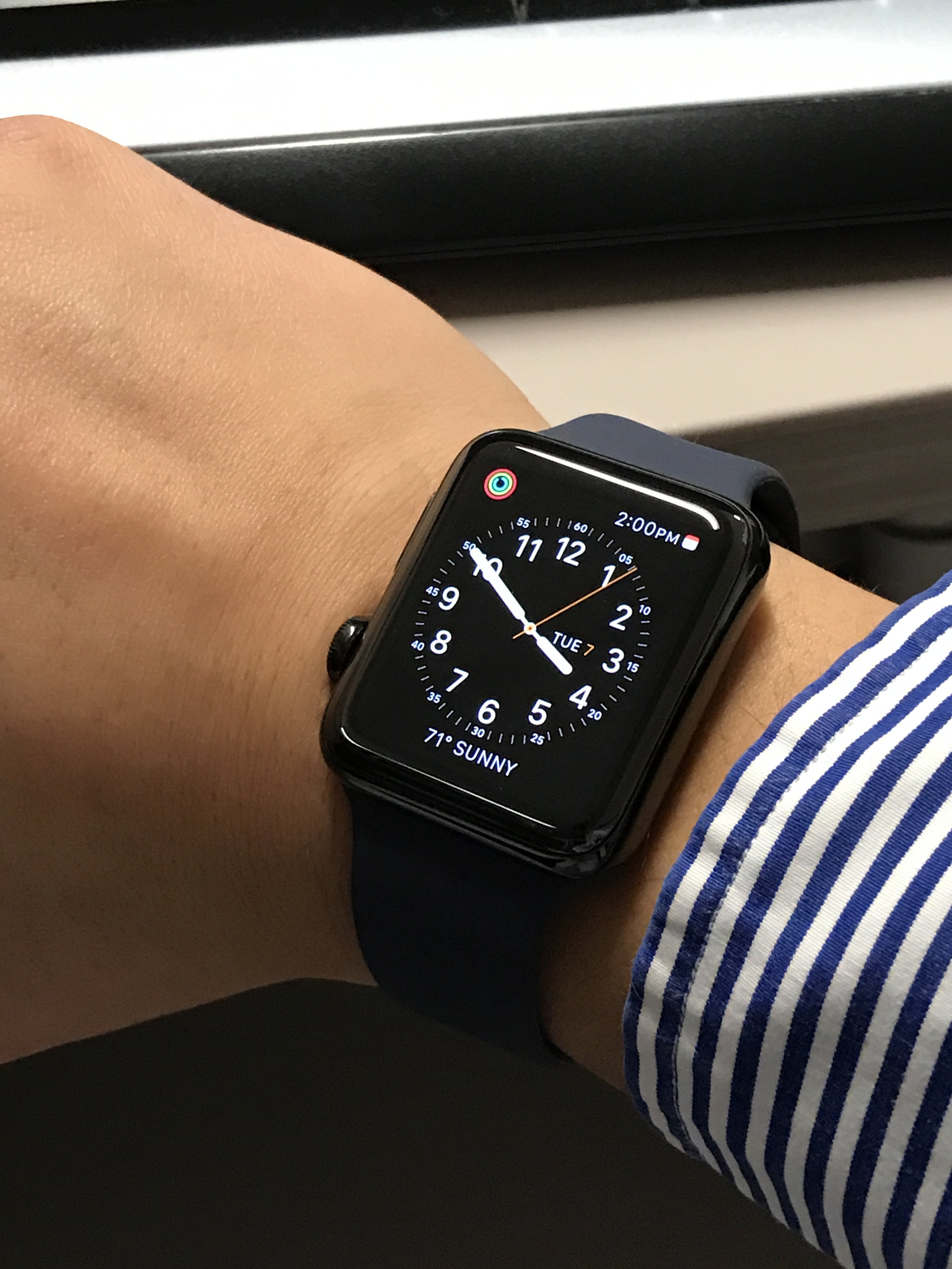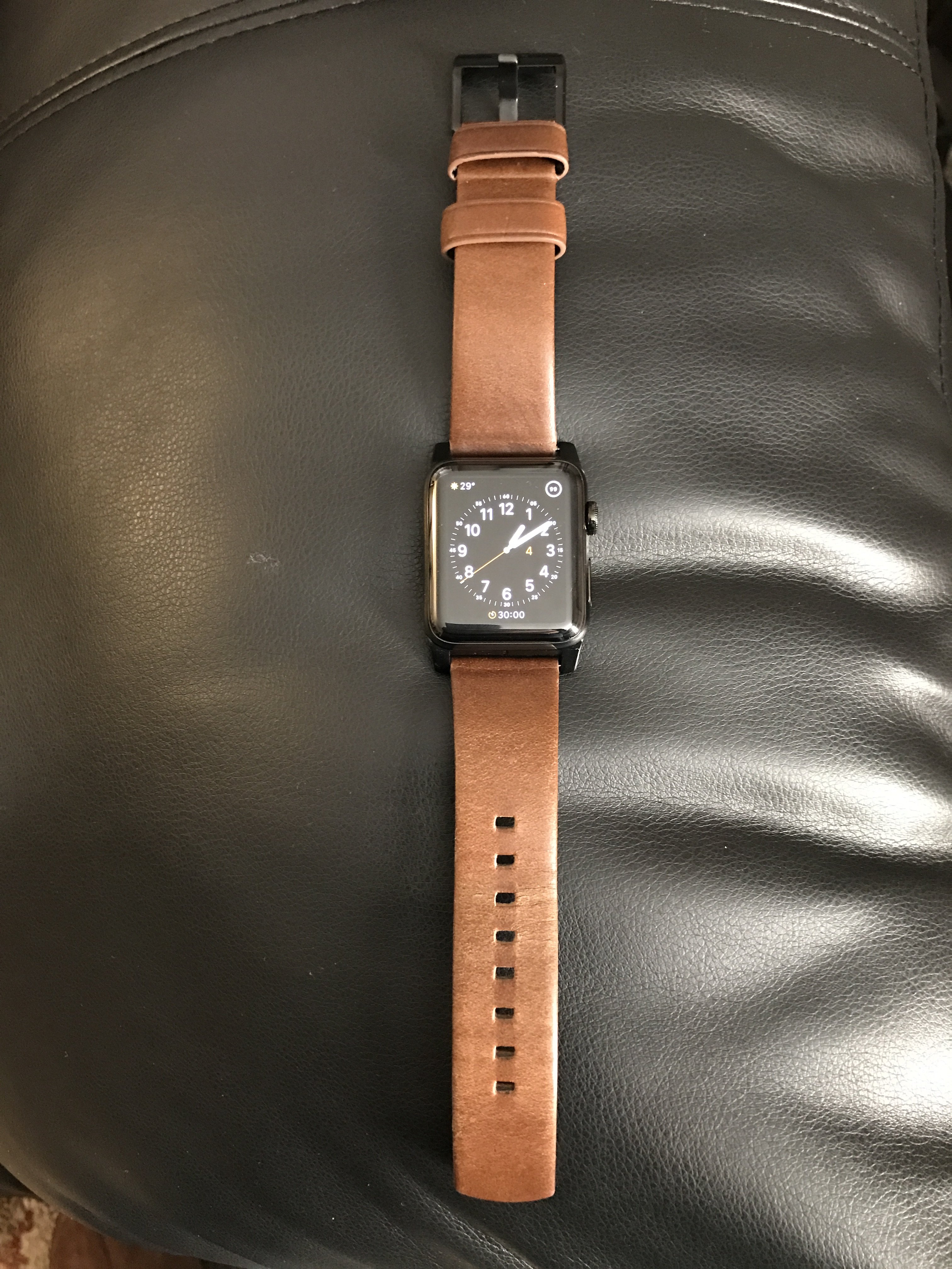 Looks niceJust got my iWatch S2 SSBlack with an Apple leather loop. Used an amazing employee discount for it