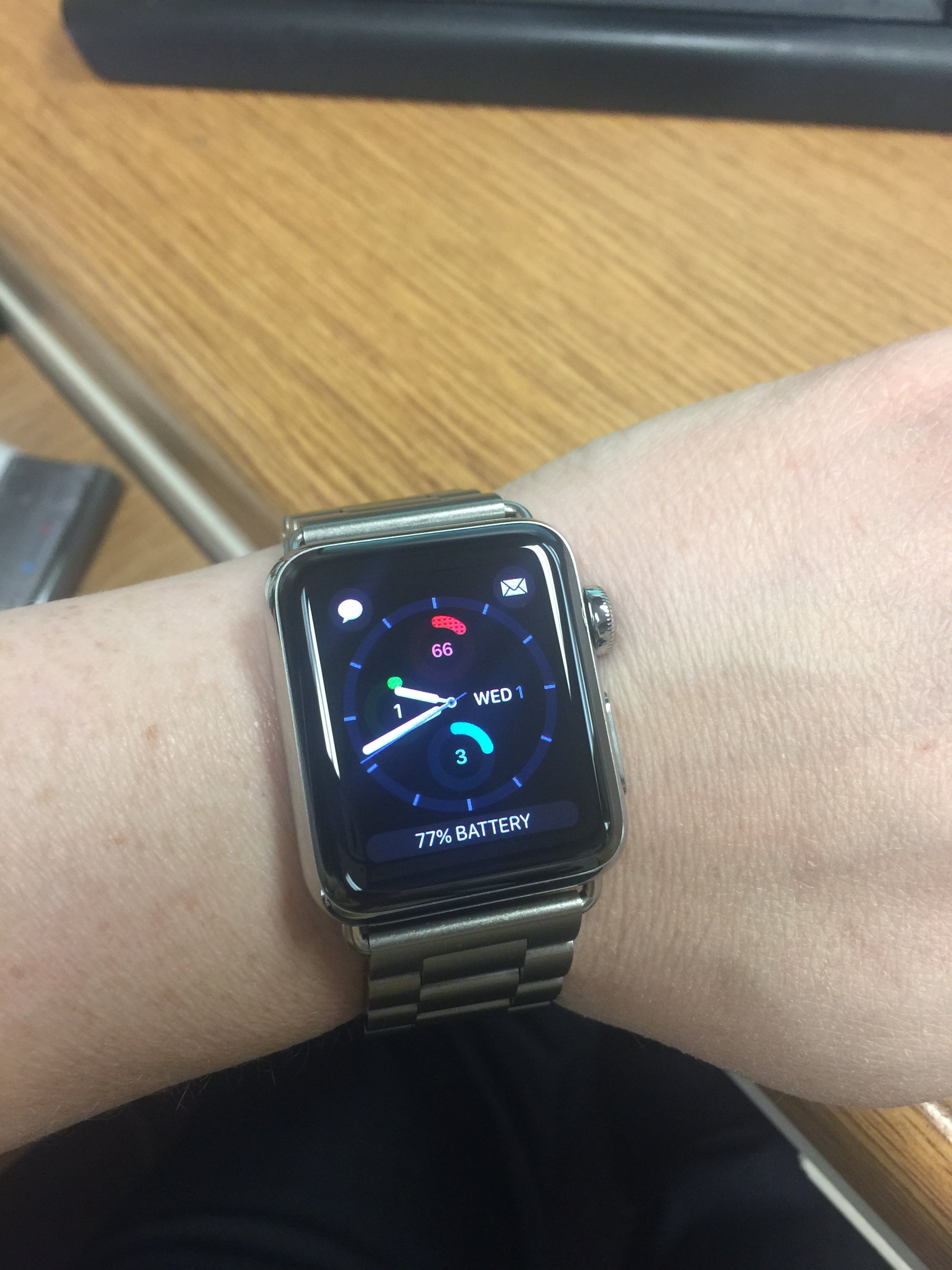 Just upgraded from a Sport to a Stainless Steel with Apples Link Bracelet. Like it a lot!