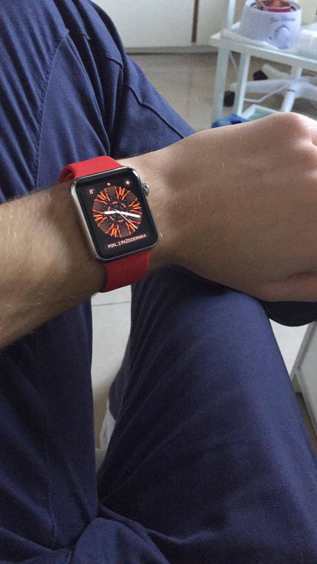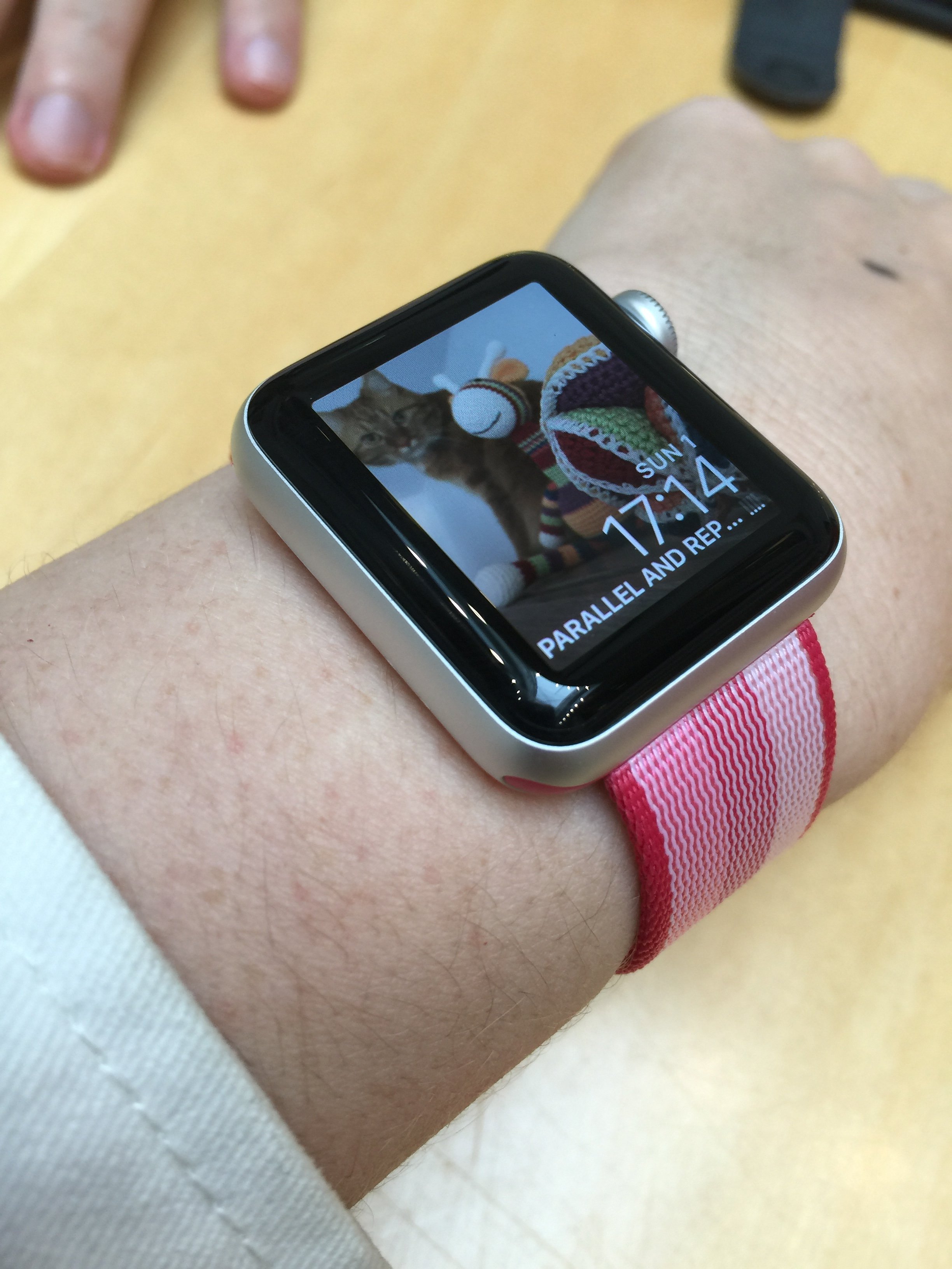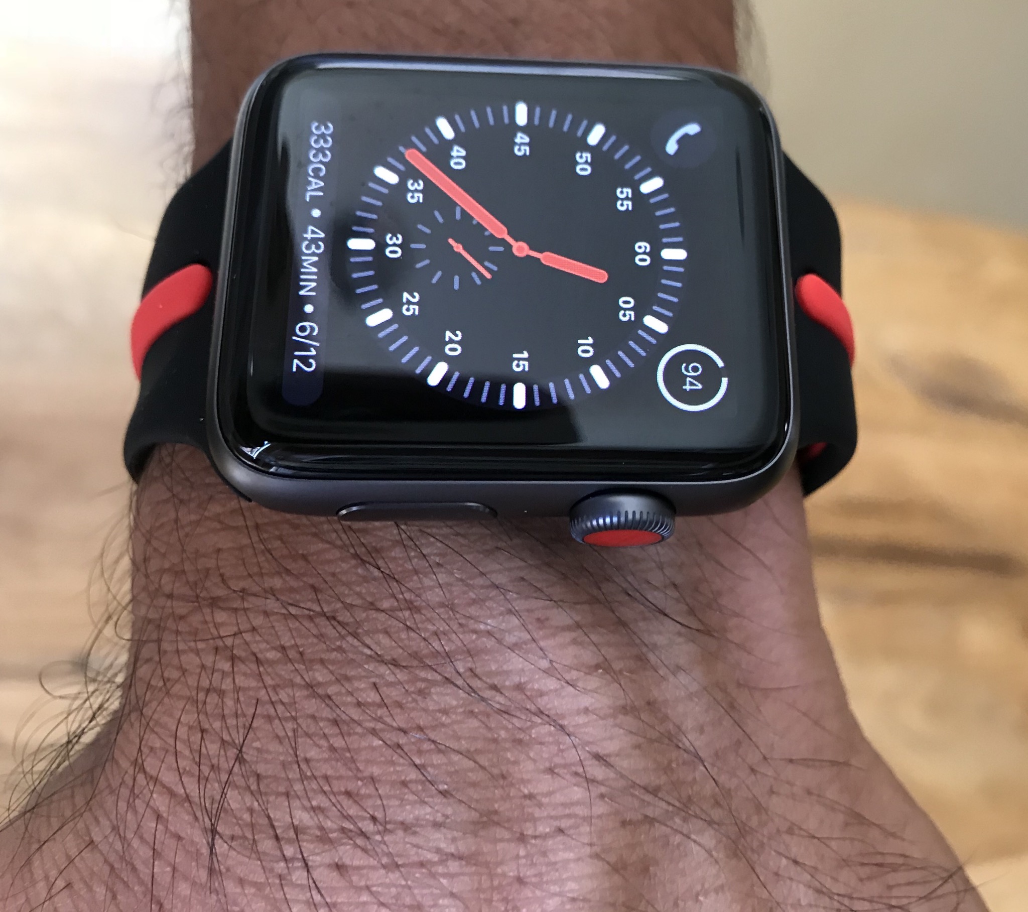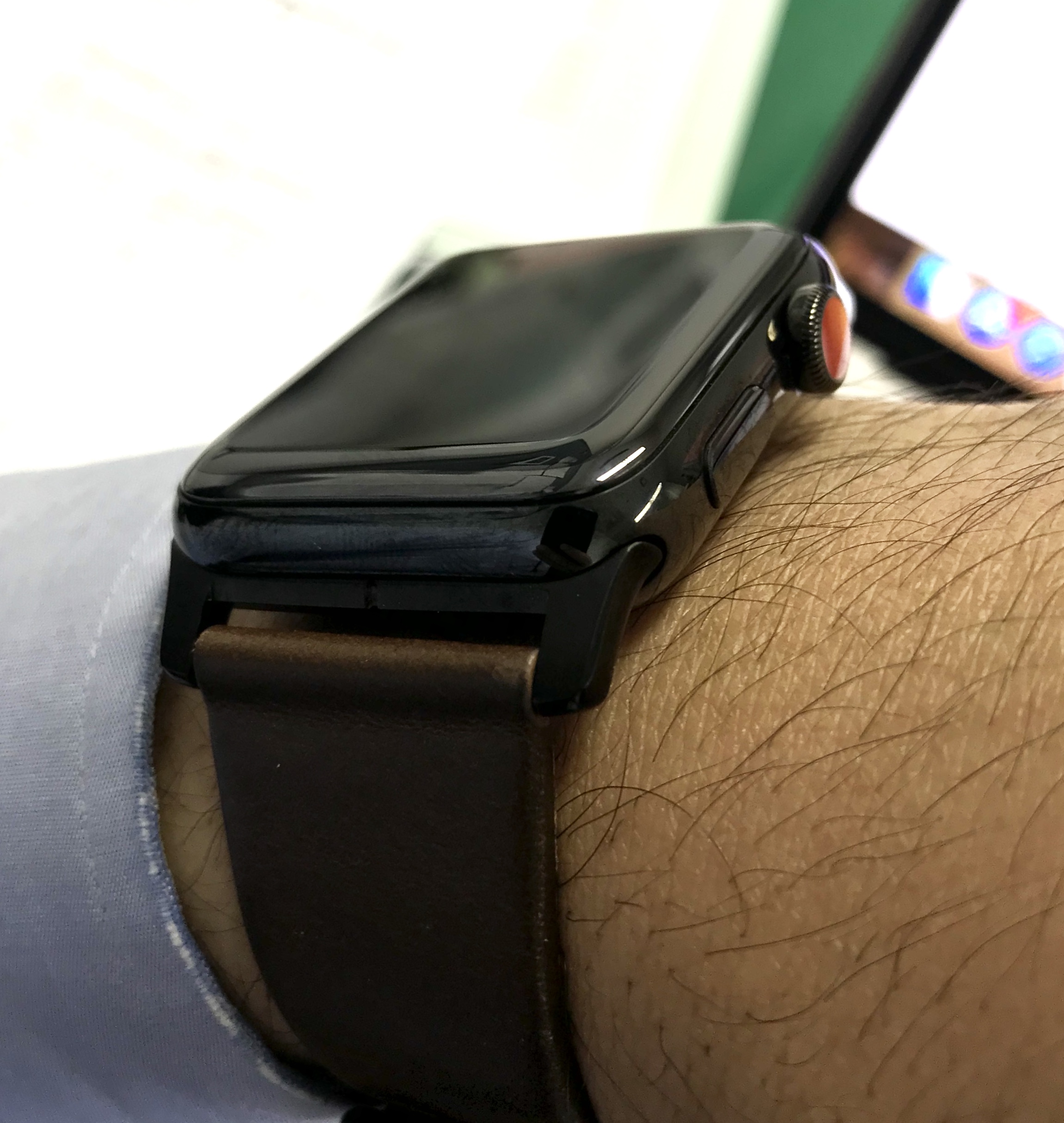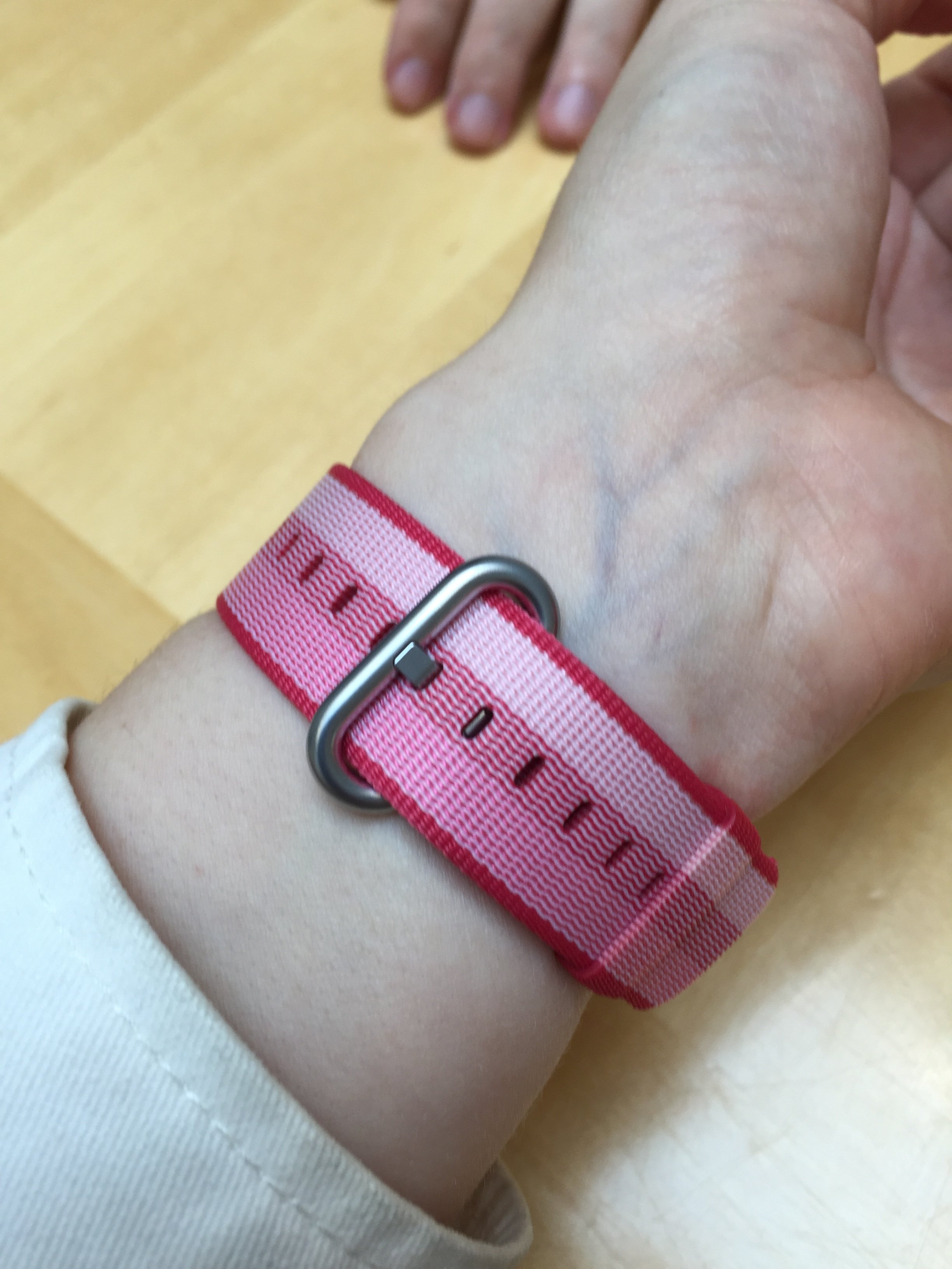 Yeah, that's why I tried to show the specks in my pic. I would prefer an all black band, but oh well. I love the feel of the band and the slight strechiness of the material. The sports band is uncomfortable to me so this is a big improvement.