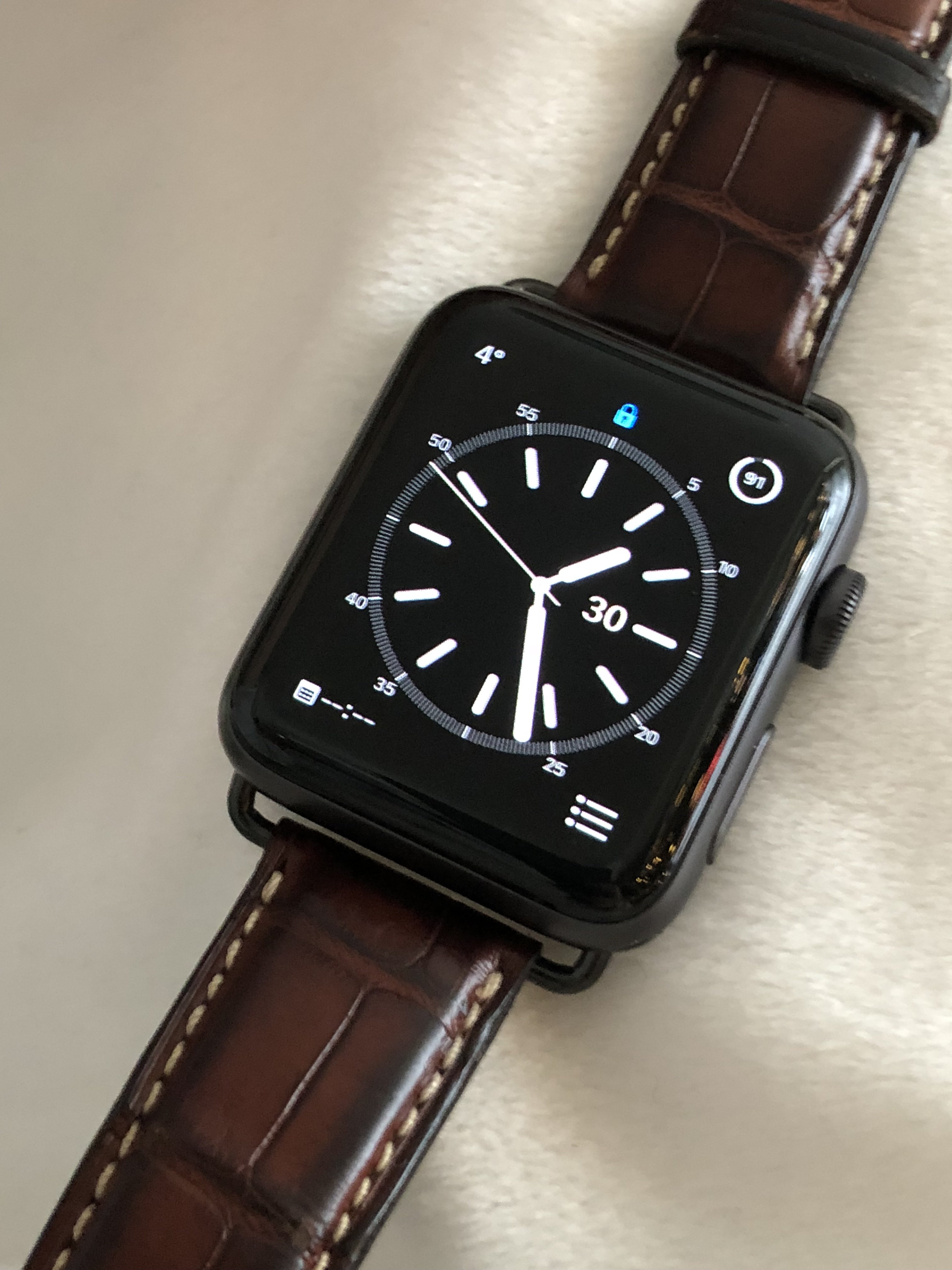 ...so much more comfortable than the Apple Midnight Blue Leather Loop, I recently had bought for me (which always needs adjusting depending on how much my wrist expands in the humid weather, we are having here in the UK!).