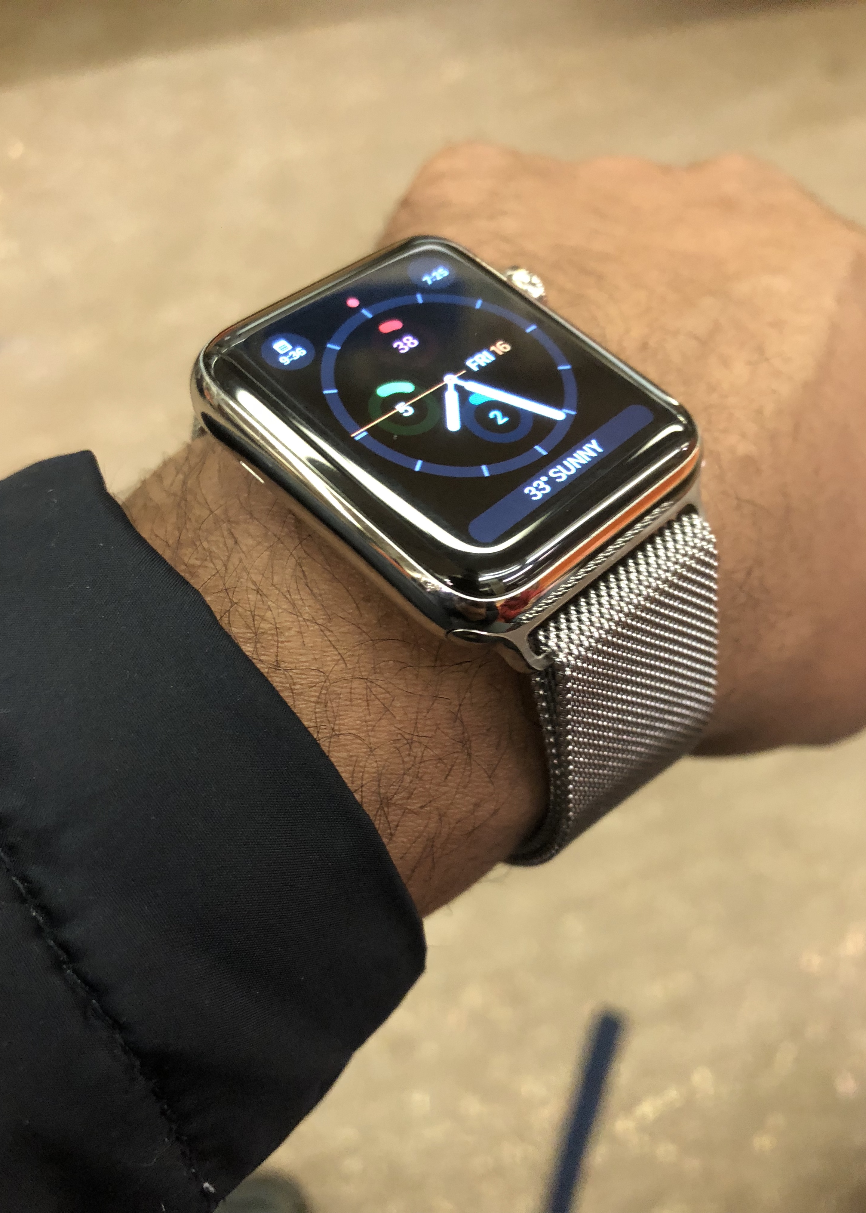 The stainless looks nice. I use to have the space black. That picture in the middle of the orange band is that one Apple sells??