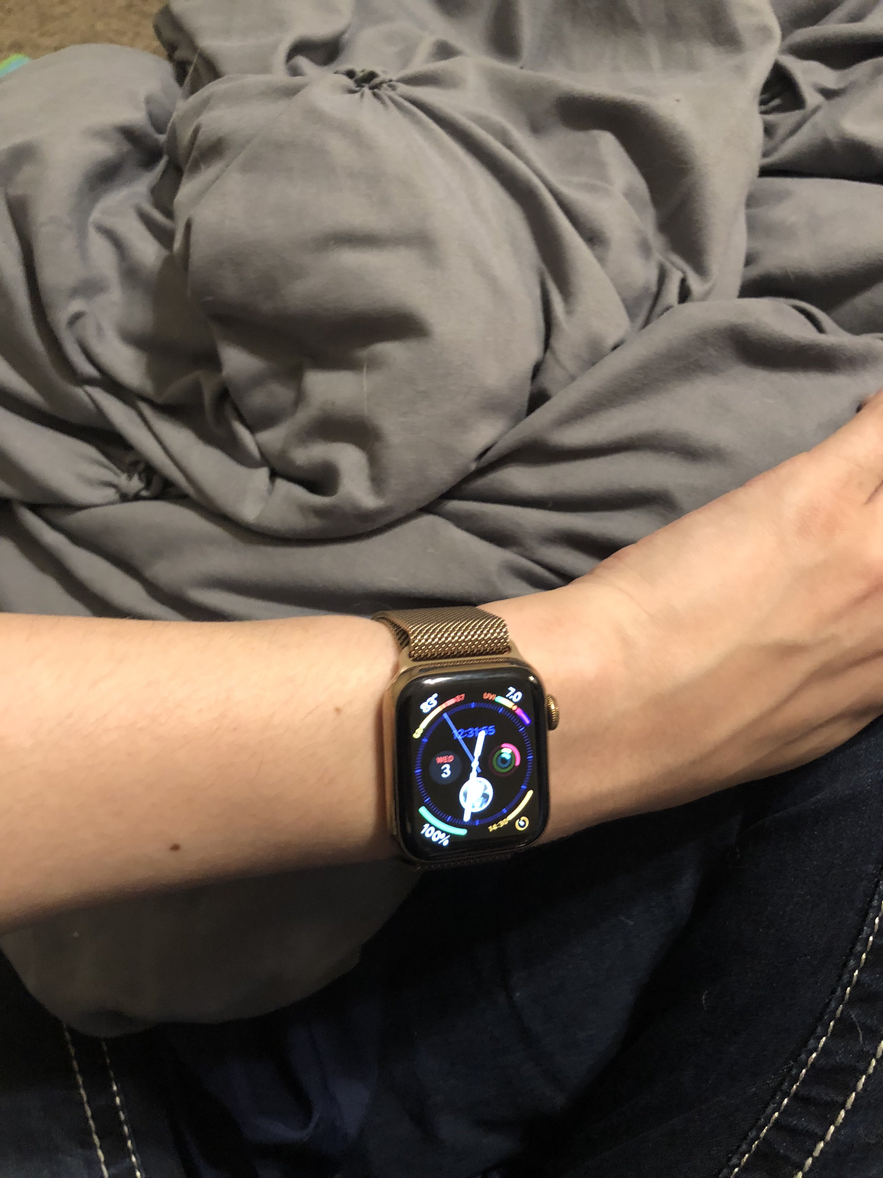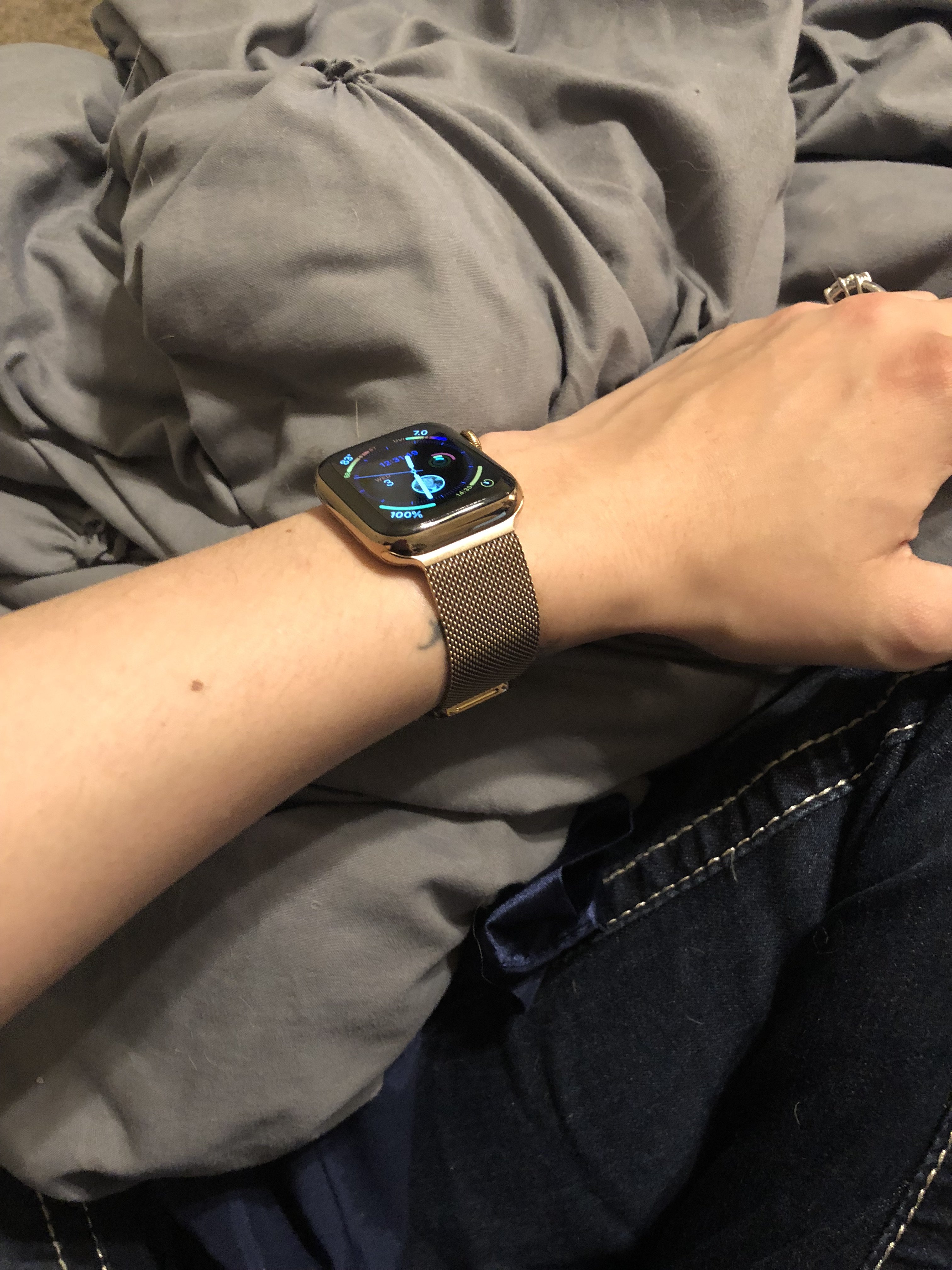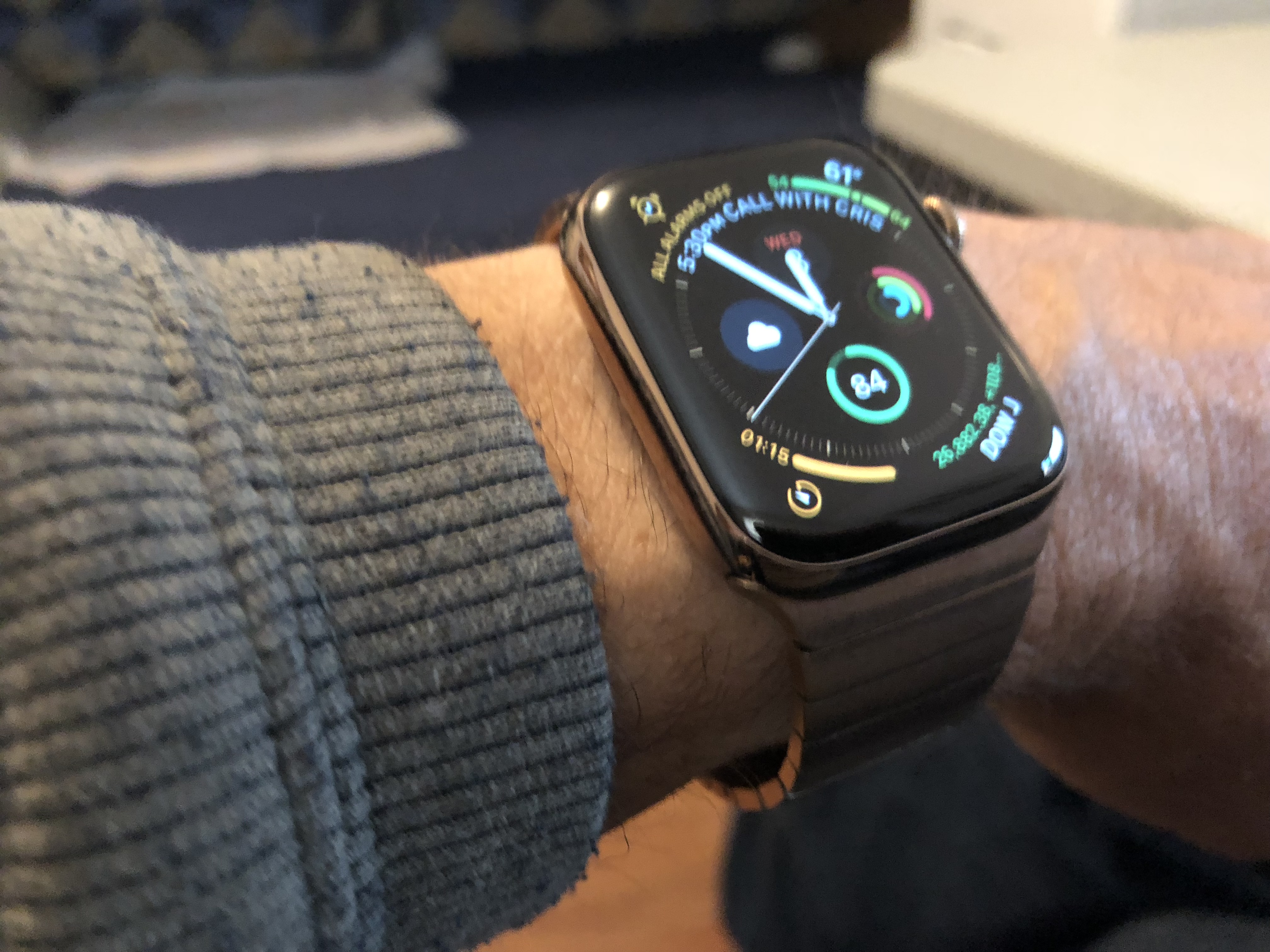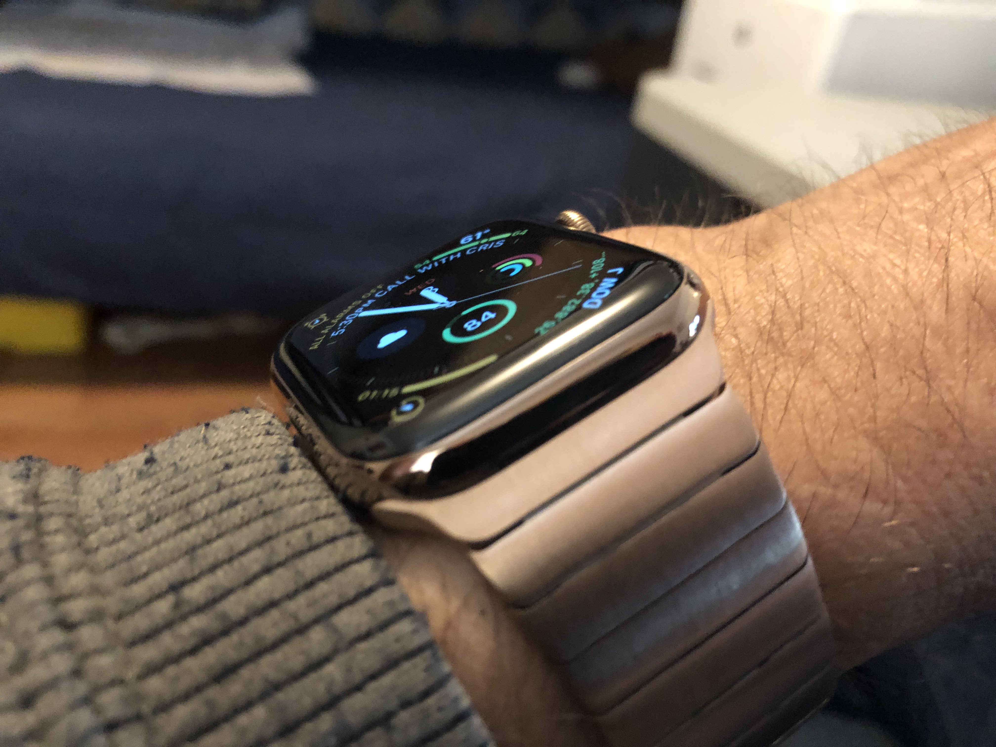It very much picks up the environment it’s in. I think here it’s picking up the gray table. It inherently has some shadow to it between the links which also has a sort of halftone shading effect. But it might also need some kind of chemical bath since it’s three and a half years old, lol. I’m open to suggestions from the group on what to clean it with.