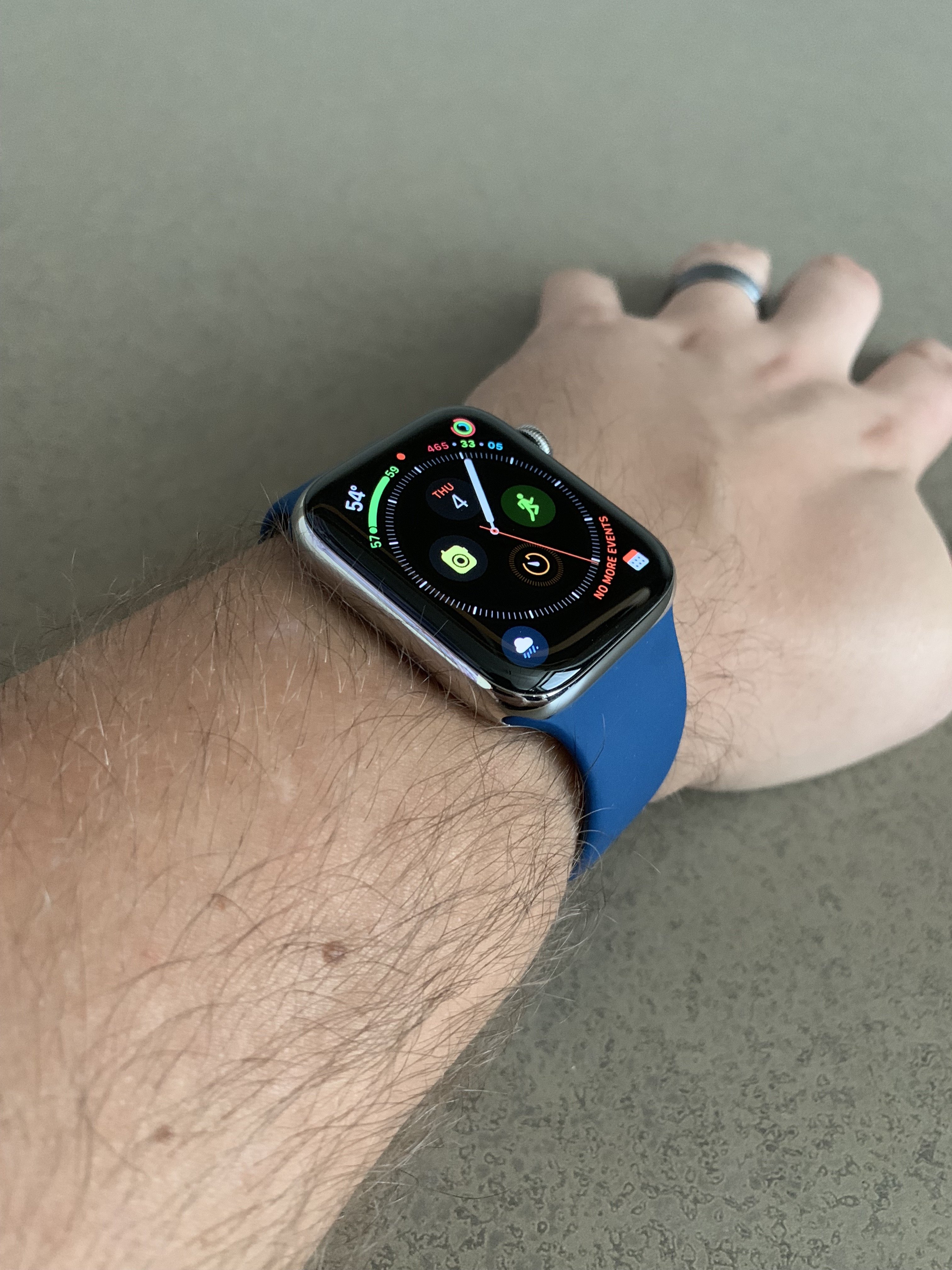 I really thinking about if to buy this band or not, because i've already the midnight blue and the ocean blue one that was released with the collection bands of the series 2 that came out thenAs promised, here is the blue horizon sport band on my 44mm SS S4. I forgot to take shots of the storm gray sport loop yesterday so I'll have to post those another time. This is my favorite sport band that Apple has released so far. It looks a little darker today because it's really gloomy outside and I never use lamps in my office. It's a rather medium blue with striking saturation and a hint of warmth which brings it slightly towards blue-green but is still firmly blue. Kind of like a deep ocean blue of sorts.