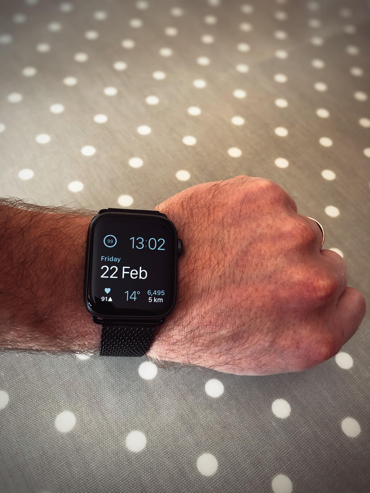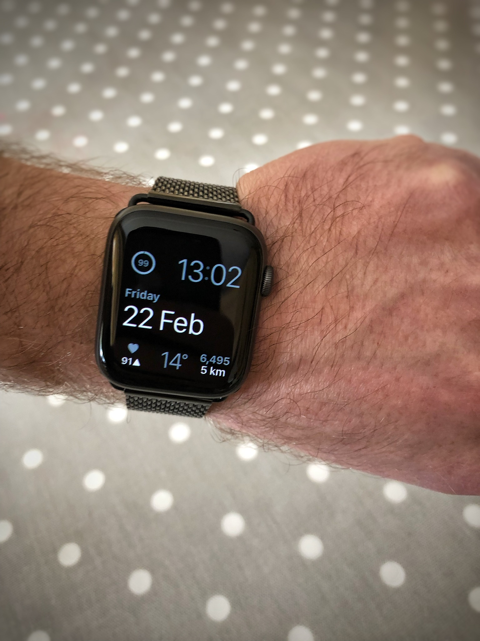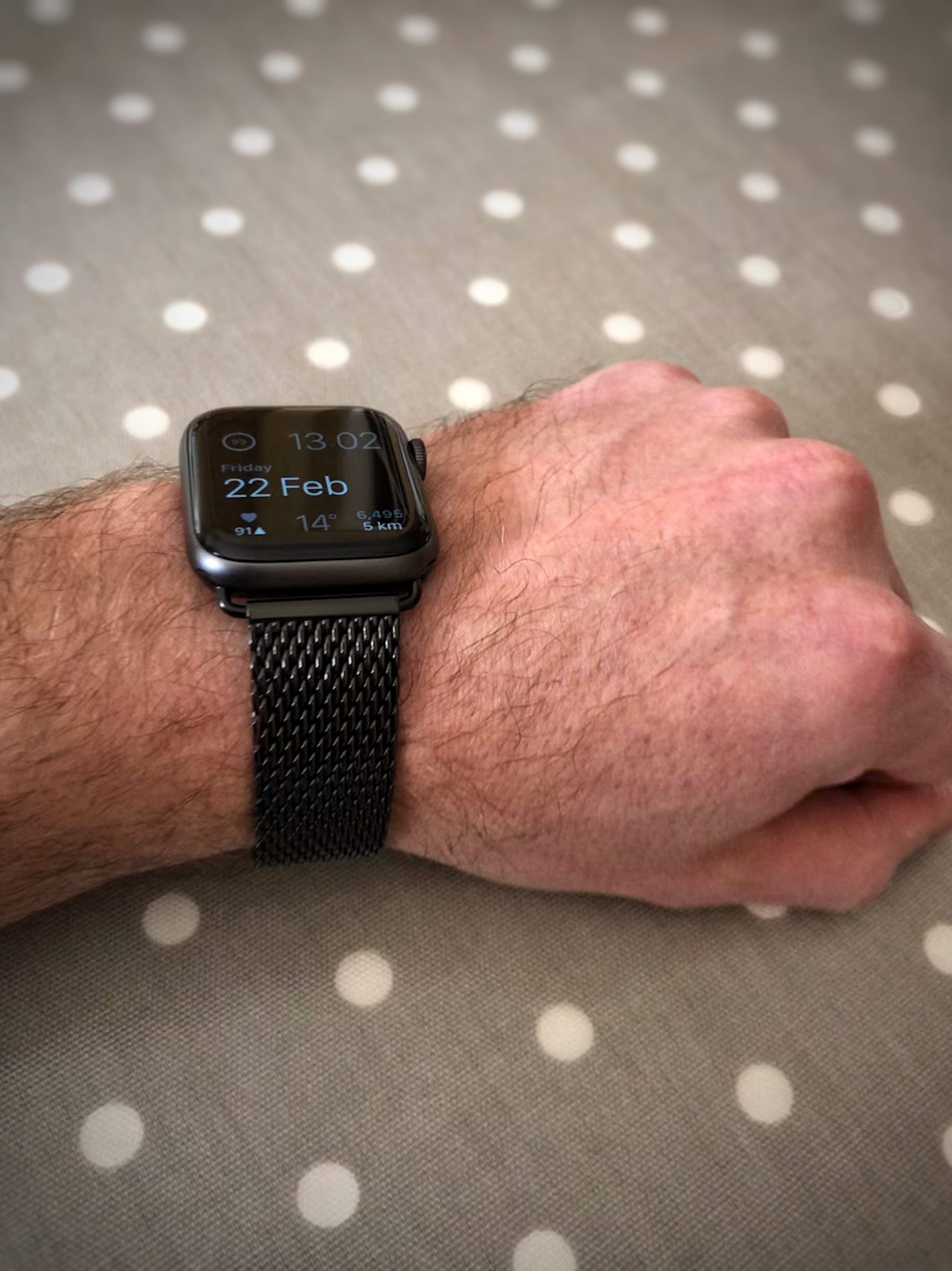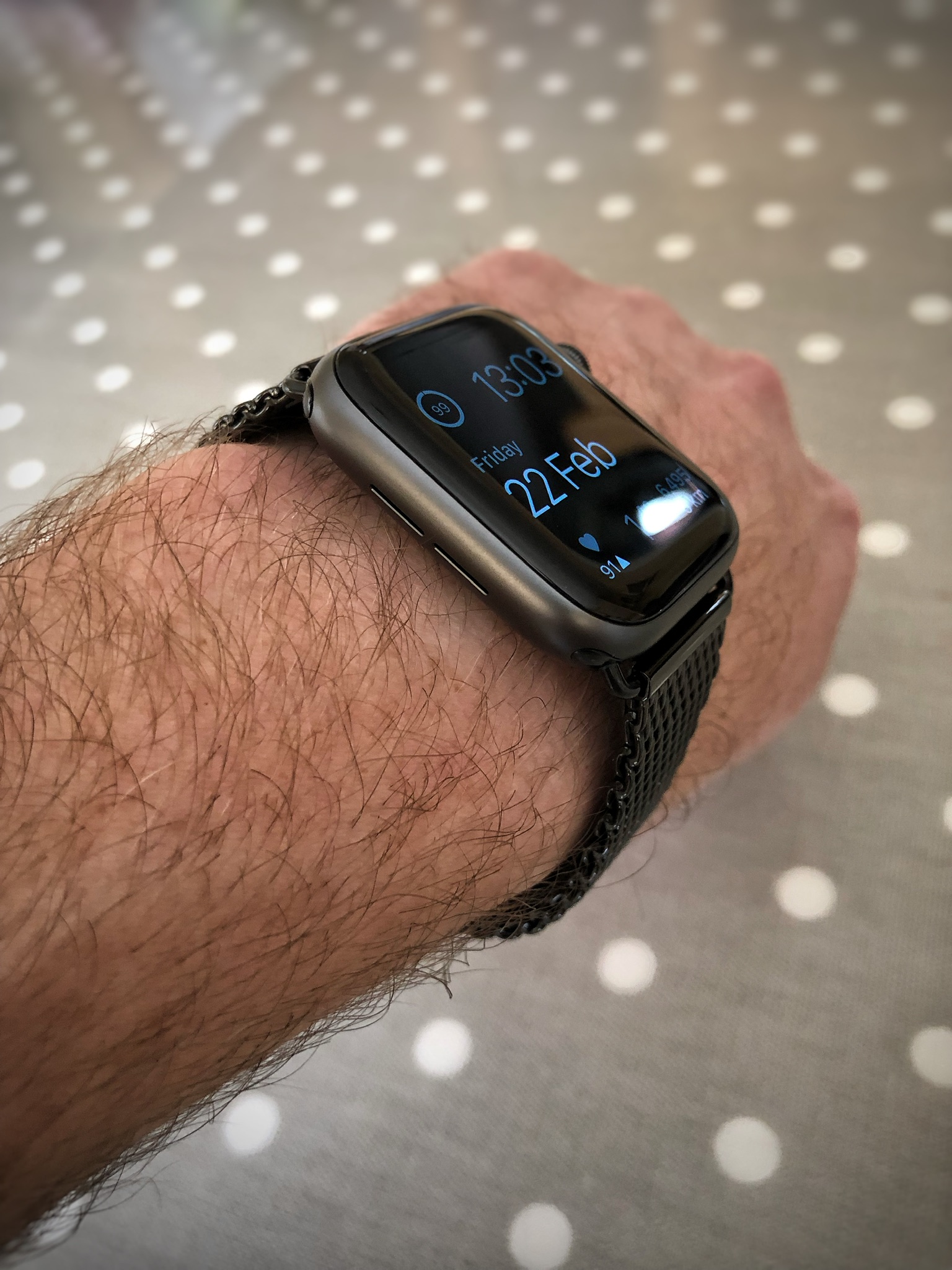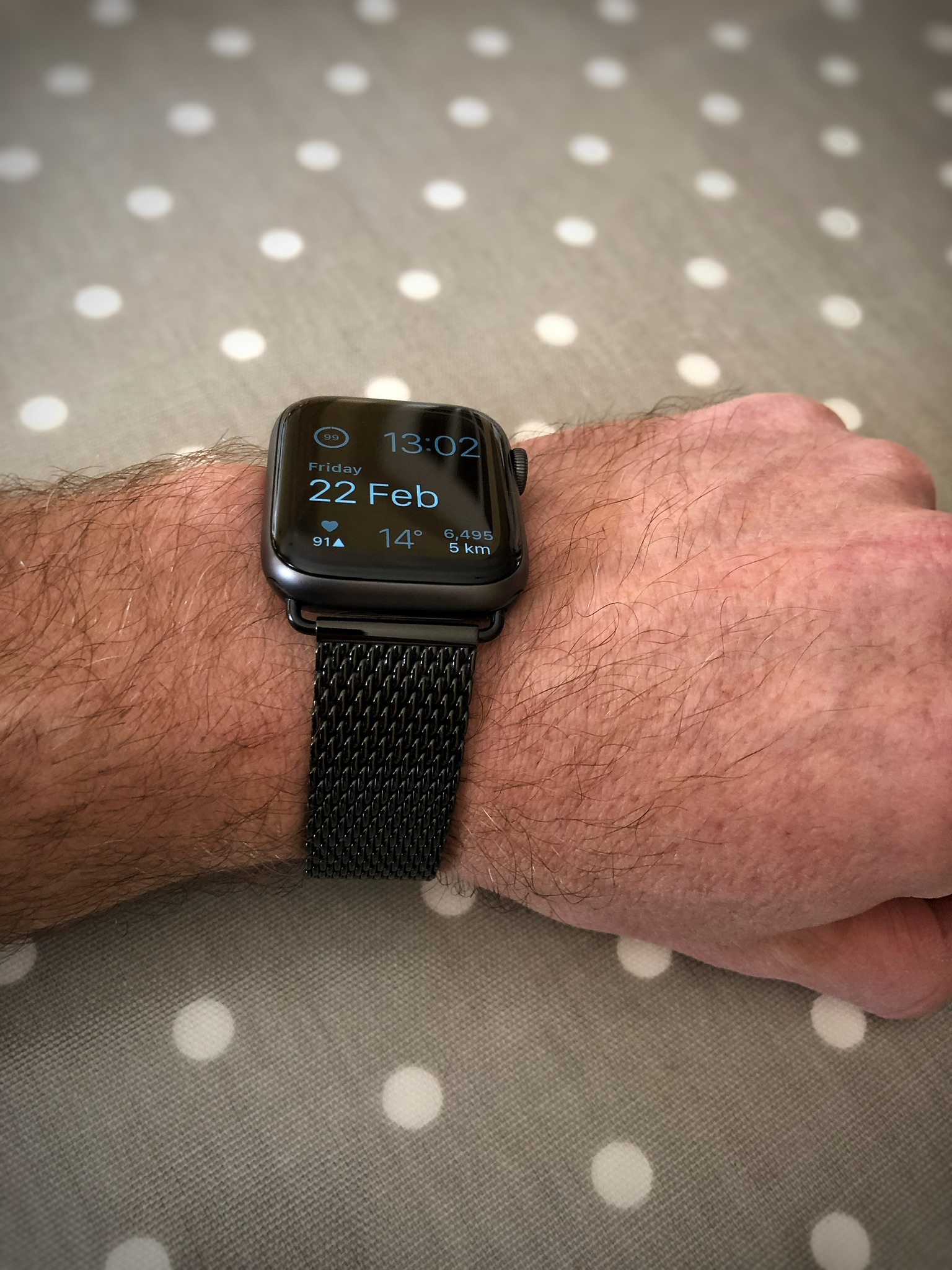 Silver Milanese Loop.What complications do you have installed on this watch face?Another one I made. I’m using a Bulova pvd Lobster ii mesh bracelet I had laying around with Apple wire lugs.
