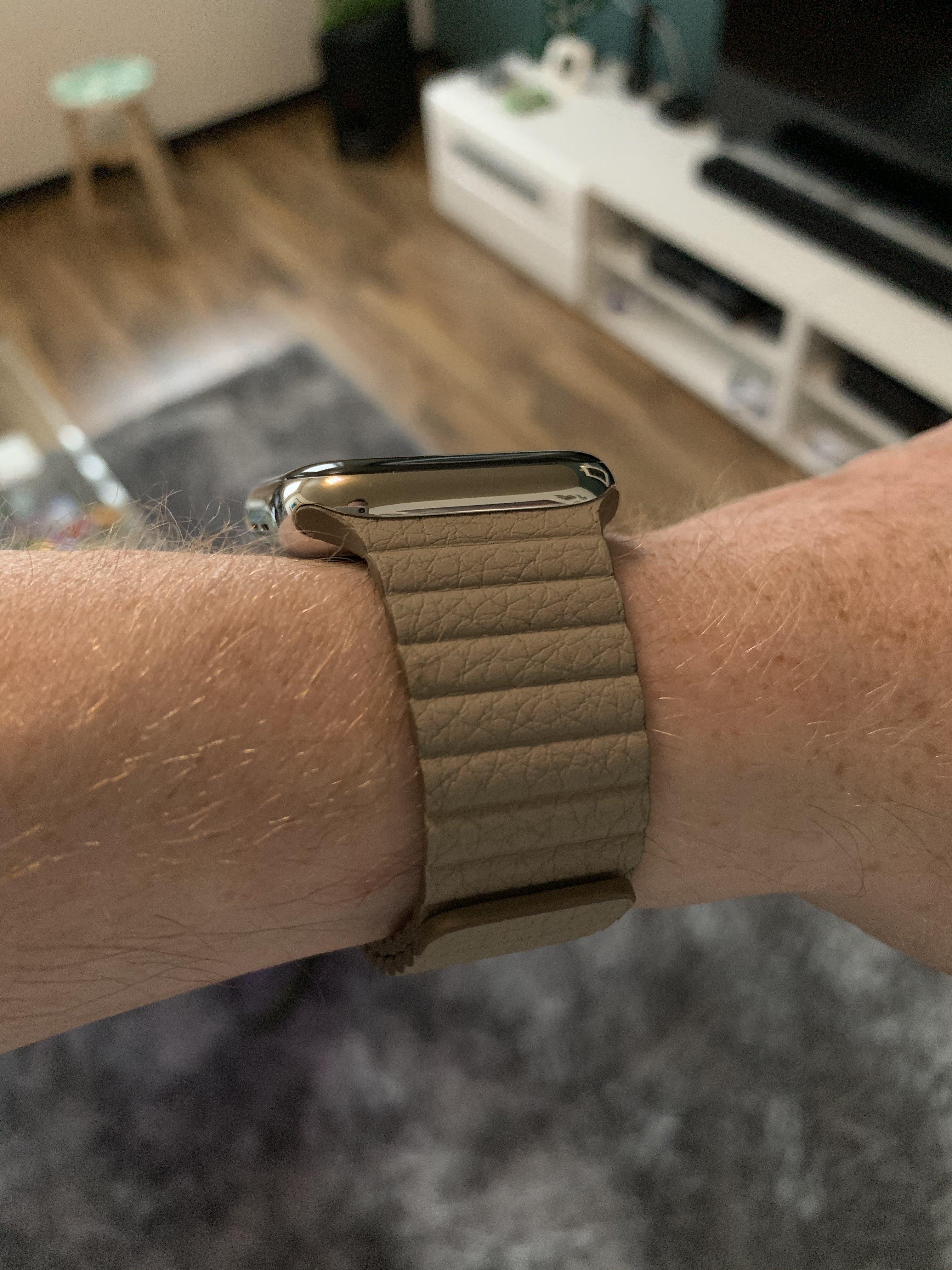 I couldn’t resist and picked another two original watch bands from the same store and saved again 50% :D. I took the sport band “Nectarine” and a leather loop smoke grey. I love them! But I need to take better pictures ;)