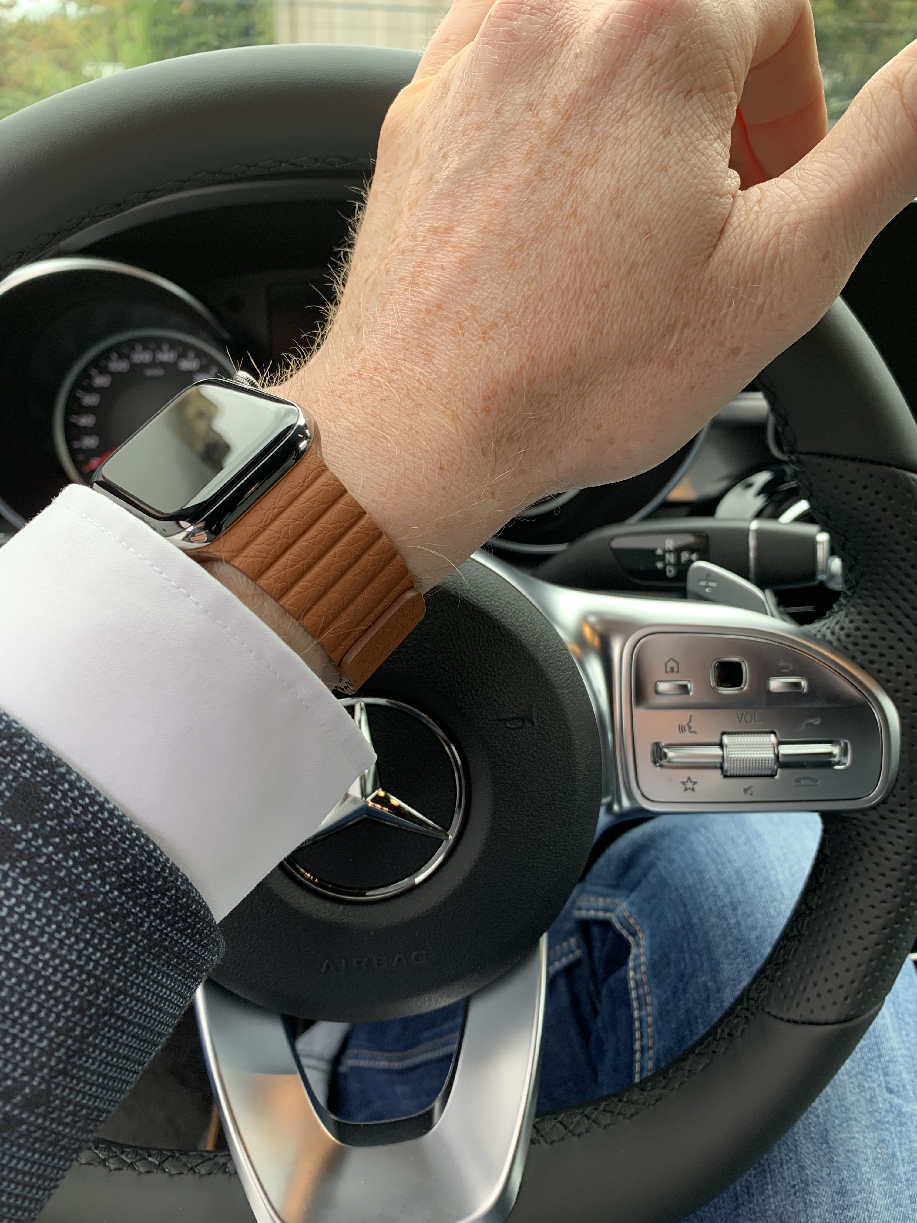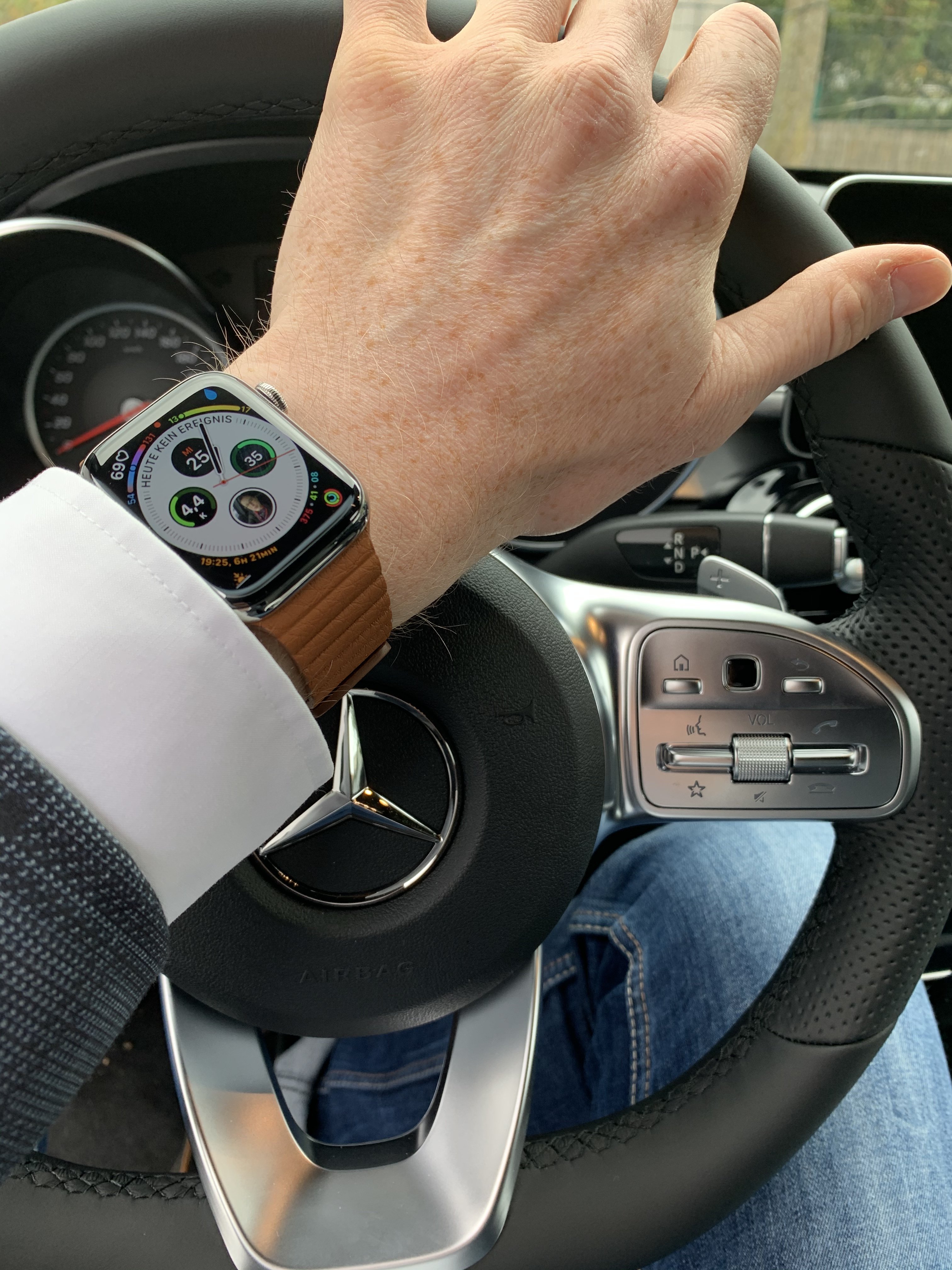 The full mercedes logo steering wheel really makes it popStill fully satisfied with my steel S4. Here with the ultraviolet sports band