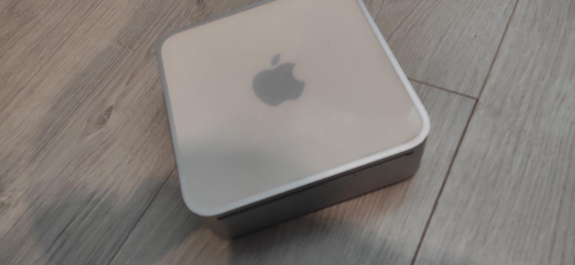 First one is a very sad looking 2006 Mac Mini 1.66 that I've got at a garage sale for 20€ without the PSU (drat!), as far as I can tell it's been opened up in the past as it's got missing screws on the DVD drive, yet nothing seems to have been pulled or replaced.