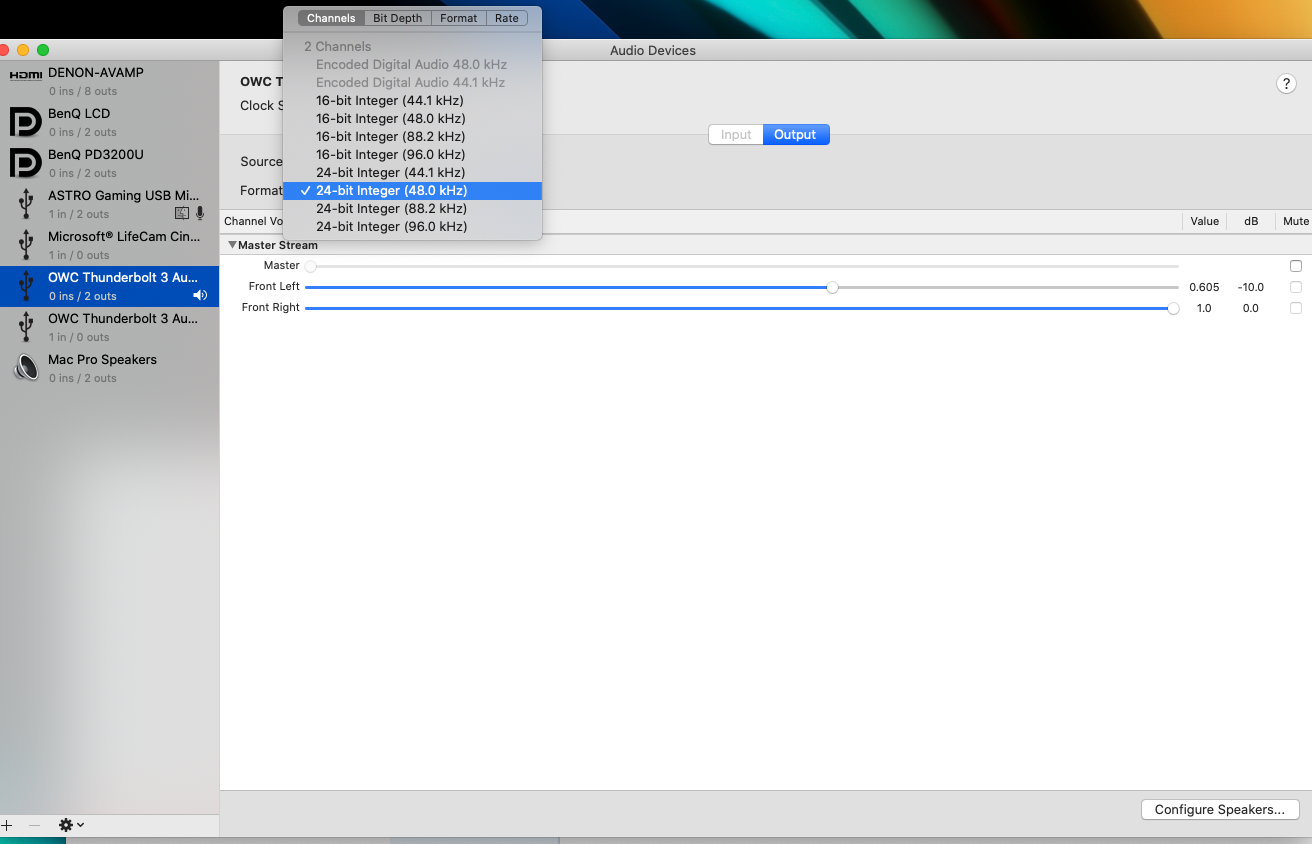 Does the dock's optical audio port output 5.1? I've read conflicting answers.Just got the second 32inch Benq monitor today, Mac pro 7,1 under the desk, Denon AV amp under there as well for 5.1 Surround sound. OWC Thunderbolt 3 Dock for extra ports and running Optical audio to my Astro headset.