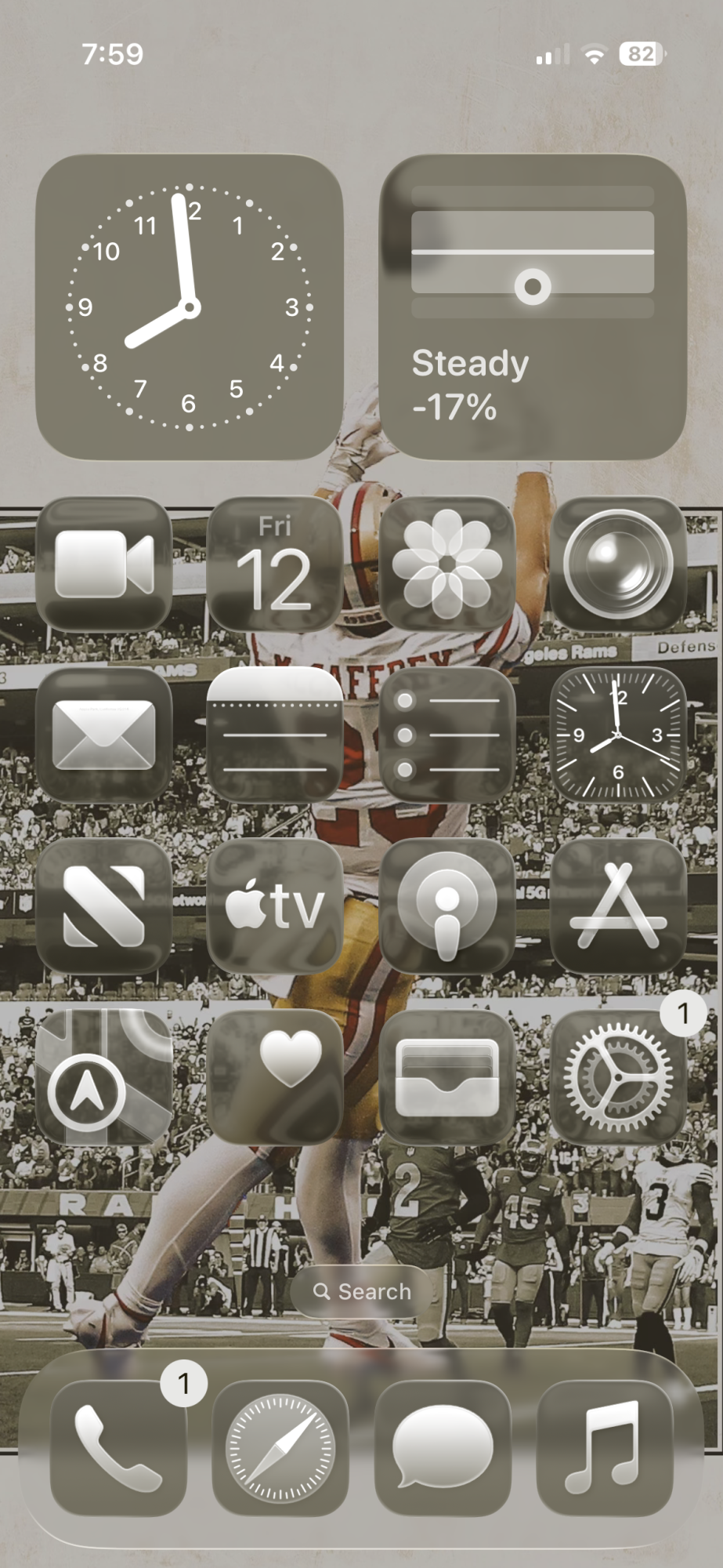 Niners all day! Great idea to match tinted app icons with the wallpaper. That’s my new setup for the new nfl season!This looks great, it blends together very well.
