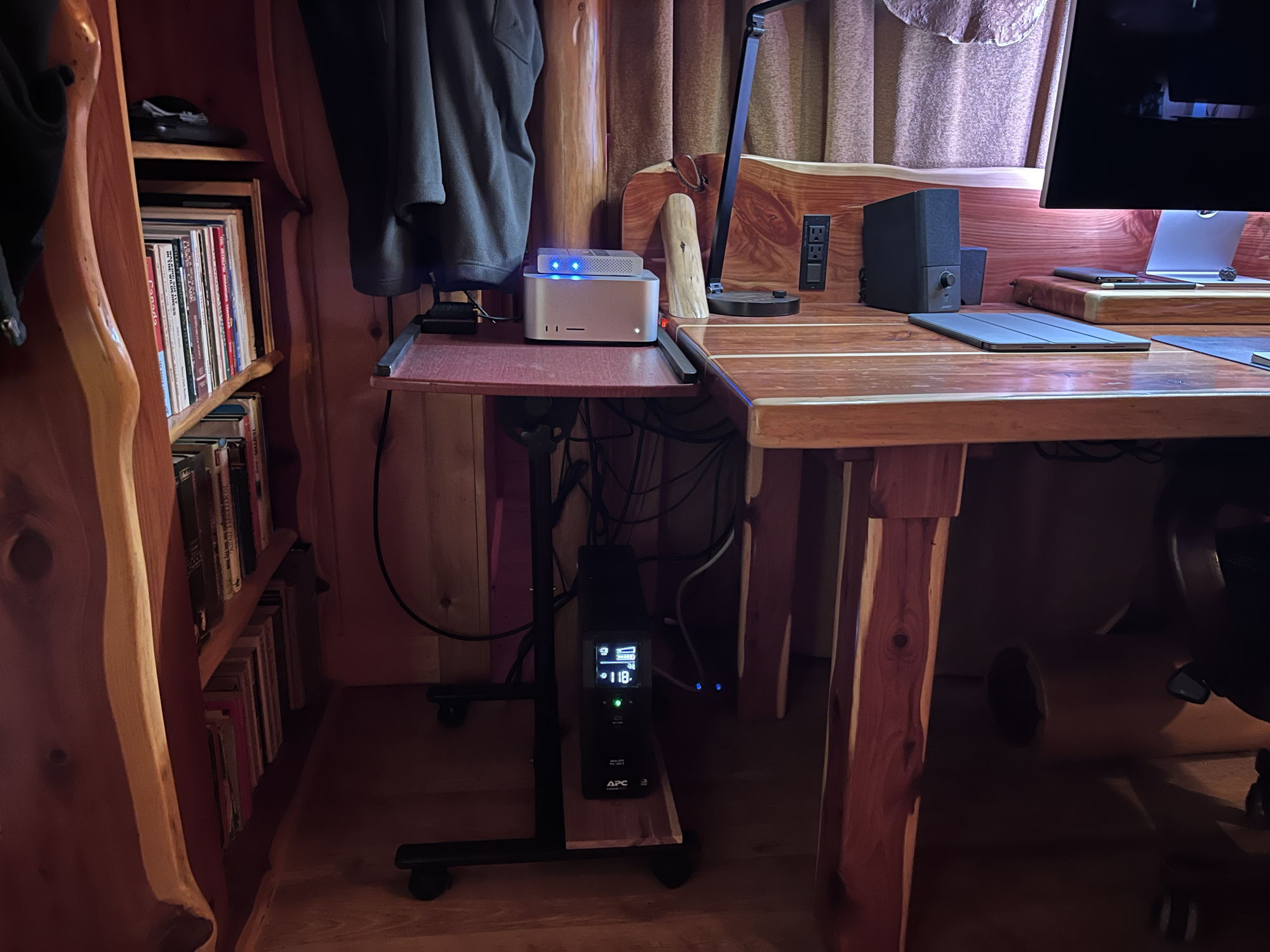 My previous Hackintosh was built for quiet running, but the Mac Studio is a whole 'nother level. Finding a quieter home for the NAS is now rather desirable to hide the drive chatter, but I have no good alternatives at the moment.