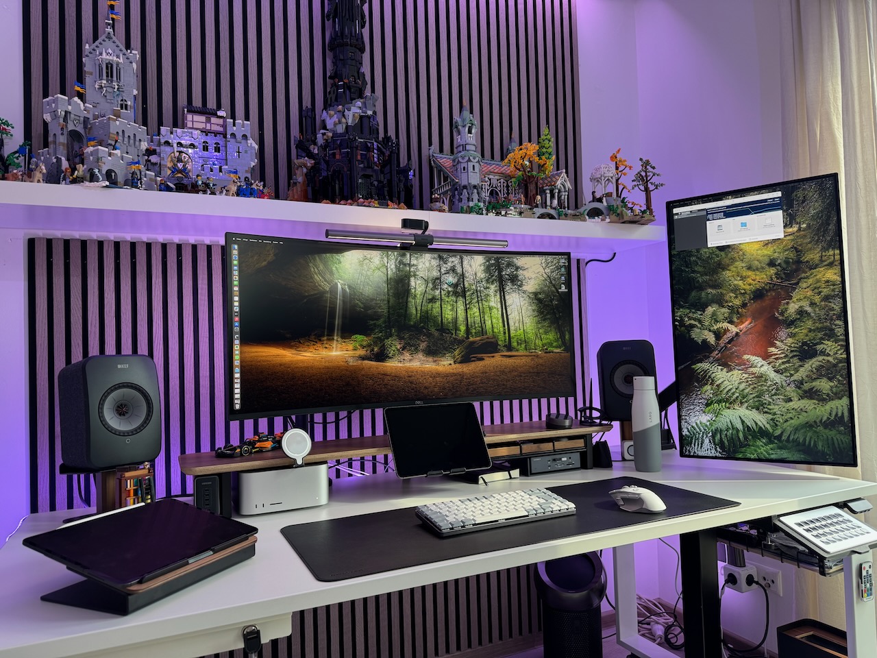 The main attraction of course is the M4Max Studio just behind the monitor's right half. As per advice from another member here I used a USB-C to DP cable and it worked great. The monitor defaulted to 5120x1440 at 240Hz.