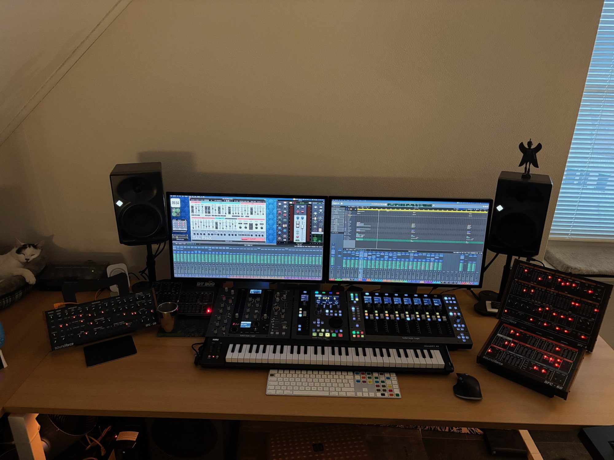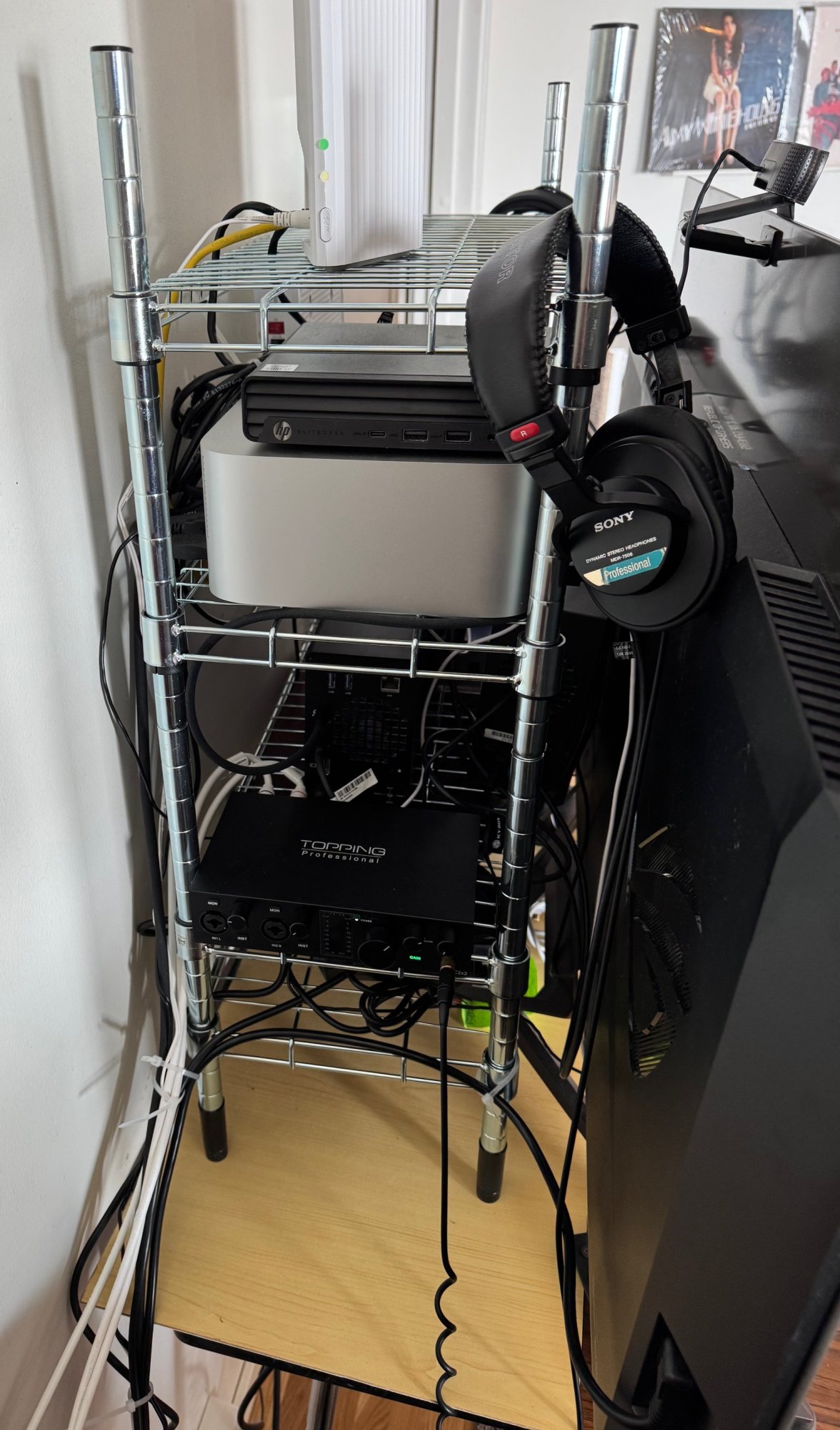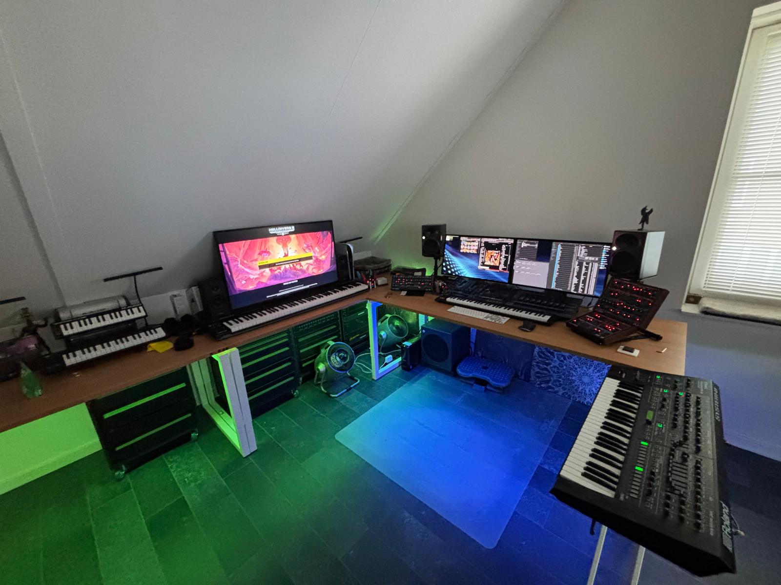 My main challenges are space and cables. This is my most minimalistic setup the last 15 years.