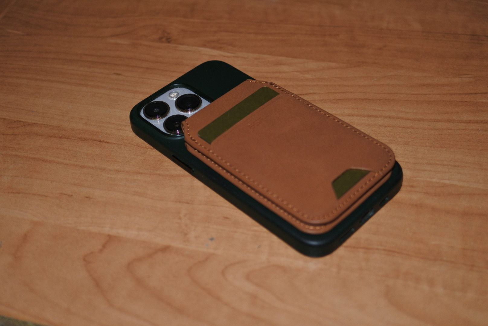 ESR HaloLock "Vegan" Leather MagSafe wallet/stand for absolute minimalist (while traveling, going to events I want just my phone in my pocket and that's it.) With one ID, one credit card (my business expense card,) and one ATM card (personal.) I carry minimal cash when traveling (Start with two $20s, unless I know for a fact I'll need more, then I just get actual higher-denomination bills to start with,) so it gets stuffed in the middle or even between phone and wallet. (One bill folded in half in between, it's still a stronger attachment than the official Apple MagSafe wallet, which I owned for about a week and gave up on.)