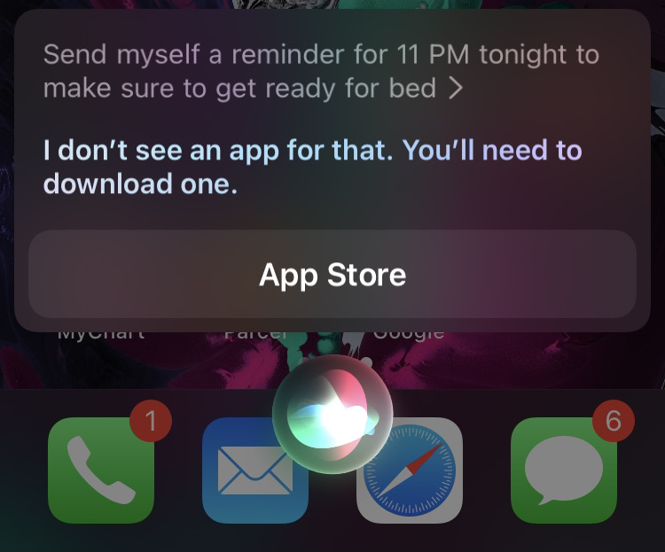 Instead Siri created a reminder with no alert notification, called "When I wake up to pack thirty cows"...