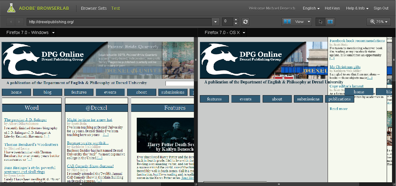 Our group's website doesn't display correctly on Macs (Safari, Firefox, and Chrome all have the same issue). However, the site looks perfectly fine on PCs (using IE, Firefox, and Chrome).