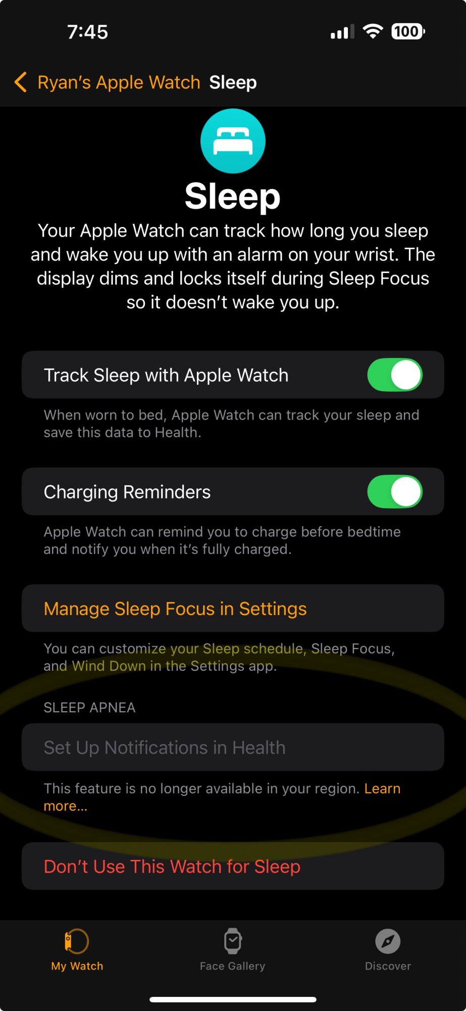 However, the sleep apnea feature is saying not available in my region (I live in Ohio and my watch and phone are set to US).