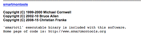 You did not answer my question. Specifically which OS X SMART GUI utility is it you think is "stealing" smartctl as you said. The one I use I showed exactly where they are disclosing the use of smartctl as required by the open source license. There is absolutely nothing wrong with this.