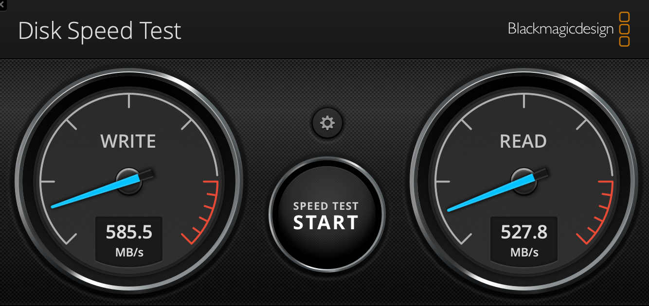 I did a Blackmagic disk speed test v.3.3 and the results says that i get max approx. 580MB/s read/write using APFS non-encrypted but I'd expect to get closer to 900MB/s.