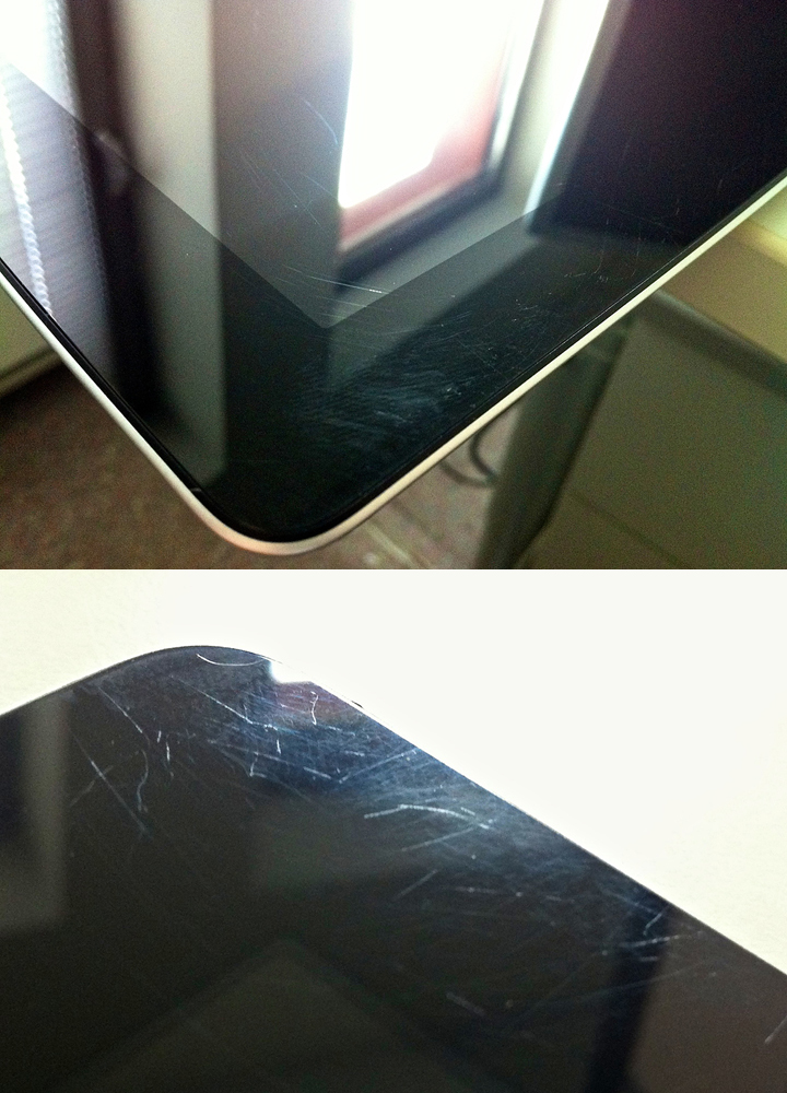 the good news is.. the scratches come right off... i took a damp rag and rubbed on the spot where the scratches formed... and they came right off and the ipad looks brand new again... its very strange... because the blemishes do not look like dirt... they look JUST LIKE SCRATCHES... but they come off... It seems like there is a part of the smart cover metal hinge that is rubbing the back of the ipad.. and the paint from the back of the hinge is coming off and sticking to the back of the ipad... the "scratches" on the ipad come right off.. but the blemishes on the smart cover hinge are permanent.. from where the silver colored paint is rubbing off..