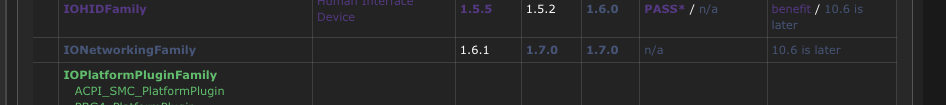 I never changed the IONetworkingFamily.kext in my environment. Because the 10A96 version was newer than what was in 10.5.8, I left it alone. This is why that kext in Table 4 is highlighted in grey (grey means leave alone the higher-version-numbered kext of the 10A96 or 10A190 install.)