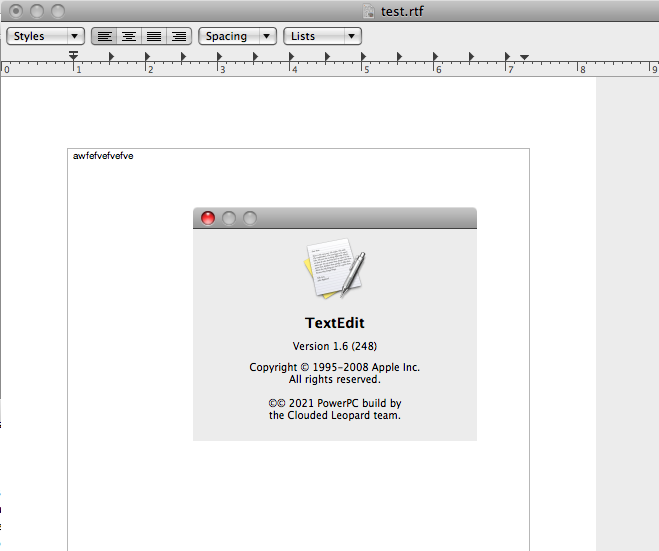 I use the TextEdit bundled with 10.5.8, and it’s one of the few applications from 10.5.8 I’ve found which works just fine in the 10A96 setting.