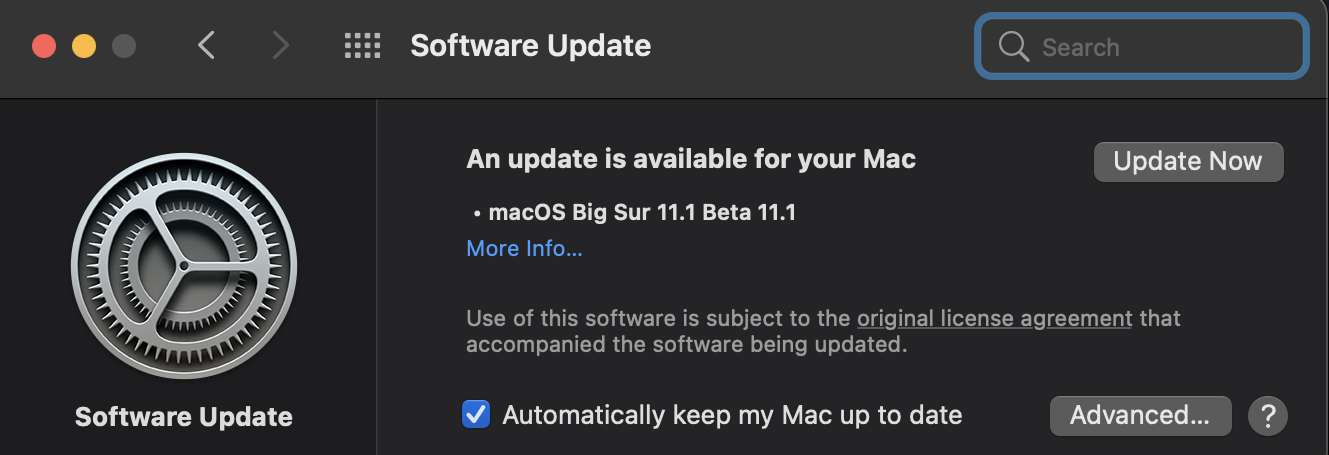 Before the 11.1 beta was released, software update was showing the release 11.0.1 as an update from 20B28. Apparently that's been replaced with this 11.1 beta, so downloading the full installer is the only way to resolve it.Yep (didn't think that was really up for debate?) - the toggle in the Software Update app to restore defaults wasn't working.