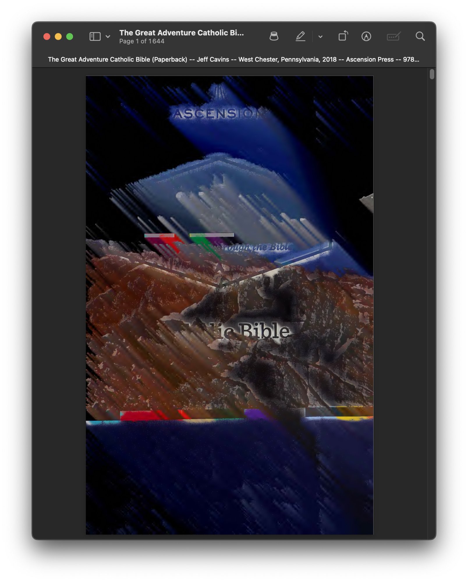 Affected files: Some PDF documents which are colour scans of old books - downloaded from Archive.org or Hathitrust. Not all such PDF documents are affected.