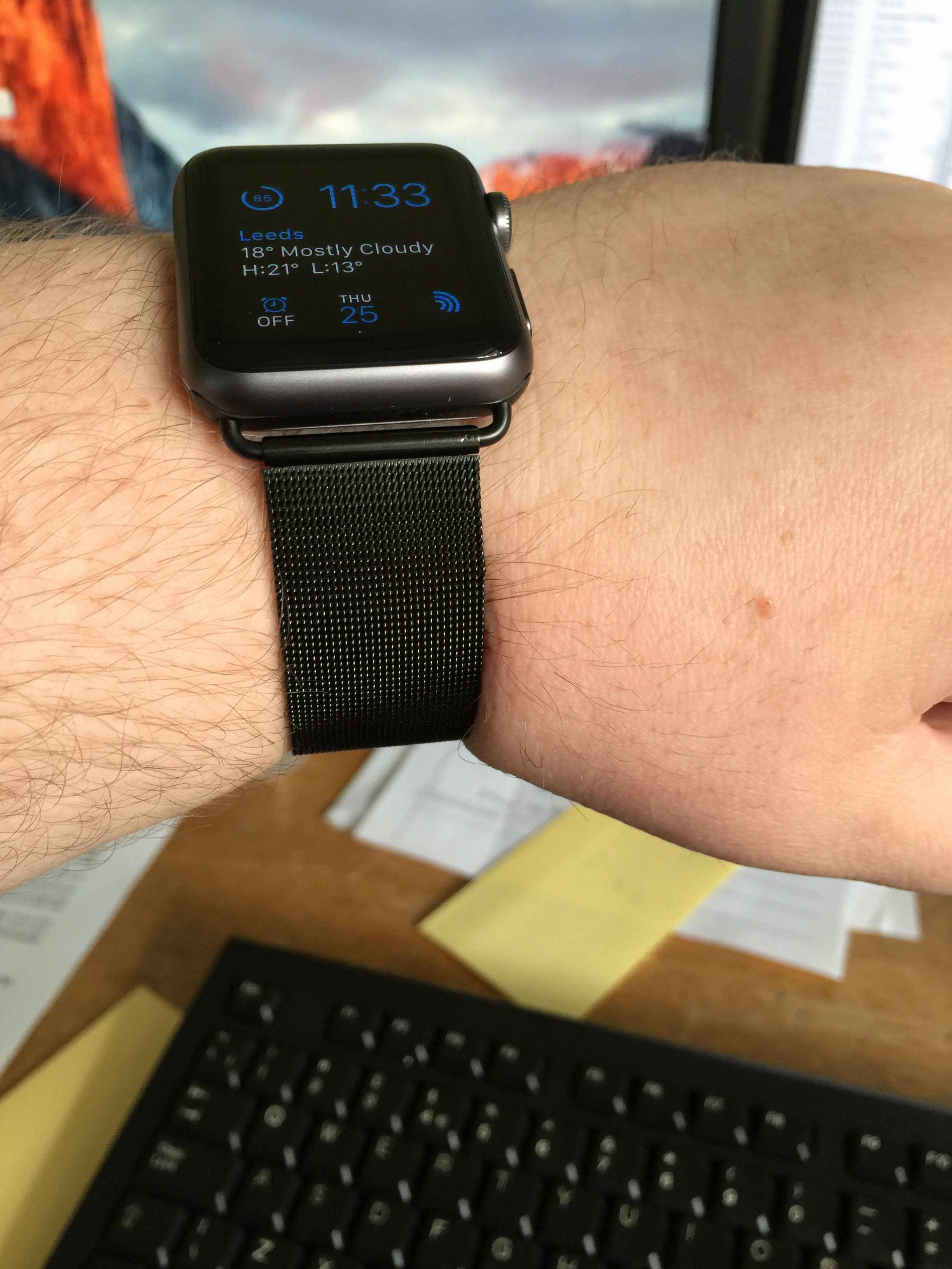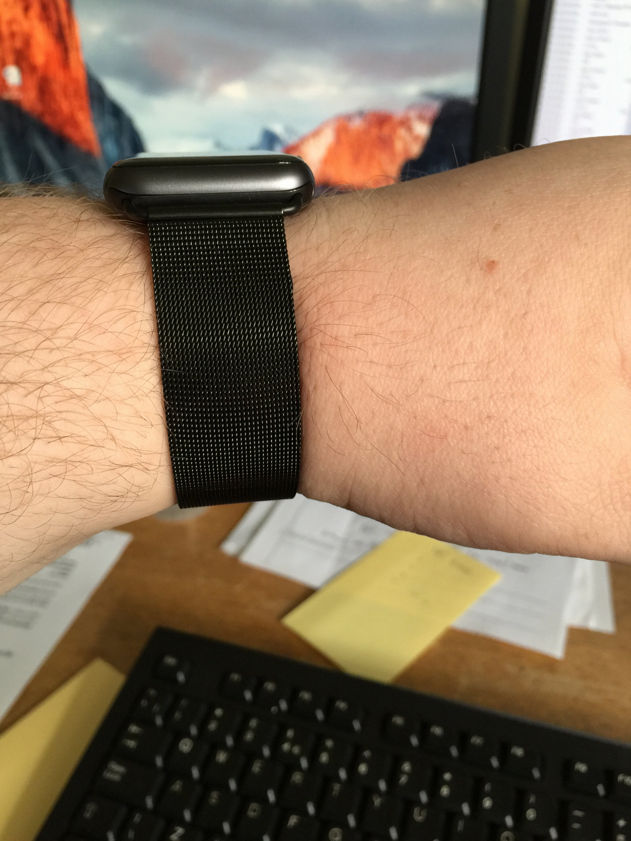 What size band 20?My milanese style strap arrived yesterday, and it is very comfy, i've got quite large chunky wrists but fits me well, the adapters are black, but i don't think it's too bad with the space grey