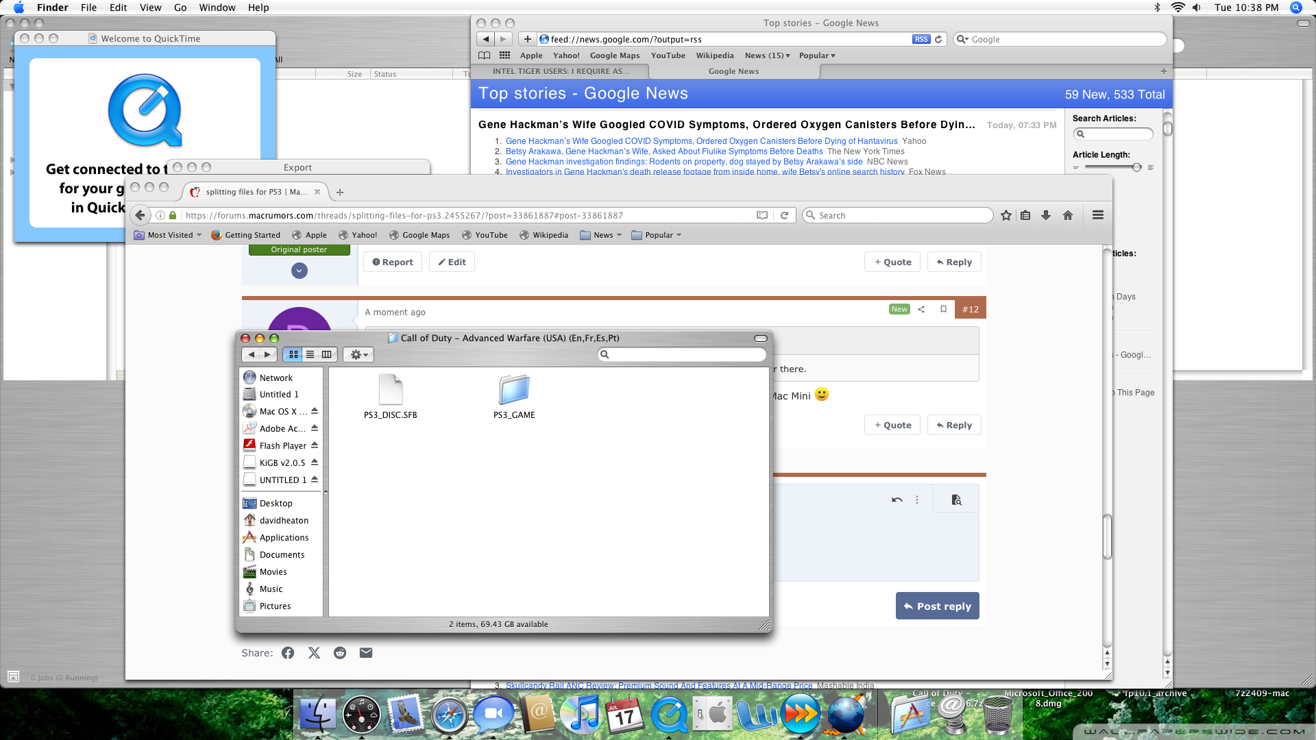 so one thing thats frustrated me under Tiger 10.4.11 on my 1.66ghz mac mini i cant find a utility that can split a PS3 game into multiple 4GB parts to copy to a FAT32 formatted thumb drive and yes ive tried Ethernet and multiman but it never picks up my PS3 under Tiger
