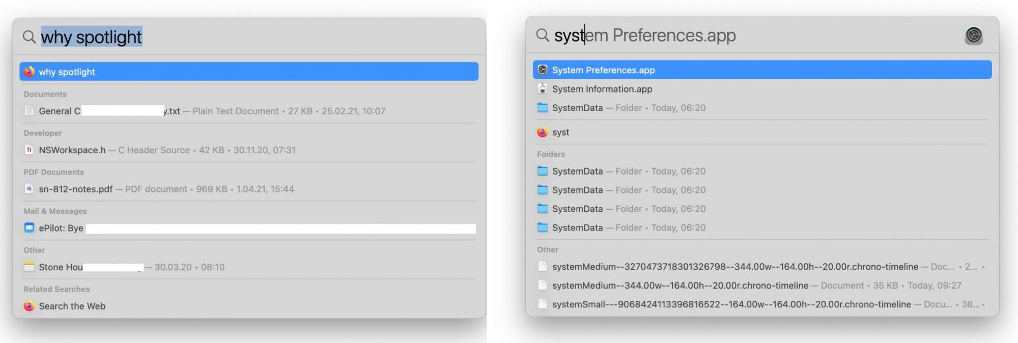 Spotlight will actually change what it lists at the very top on each additional character you type.