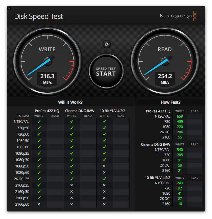 My Black Magic Disk Speed Test is the follow: